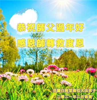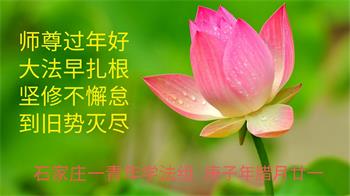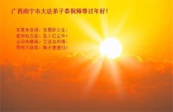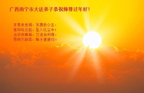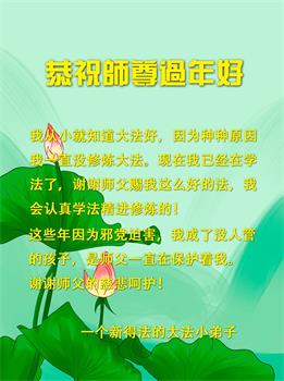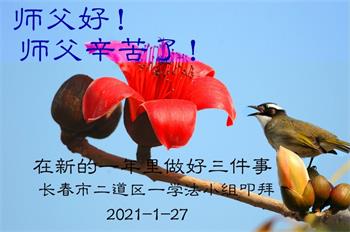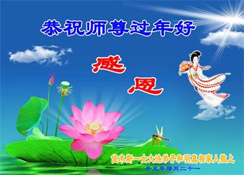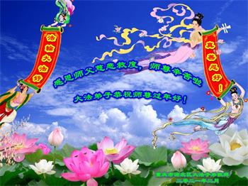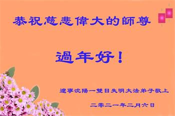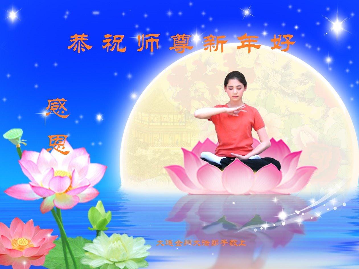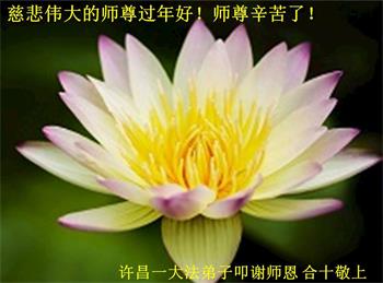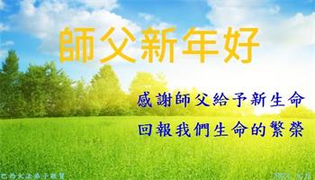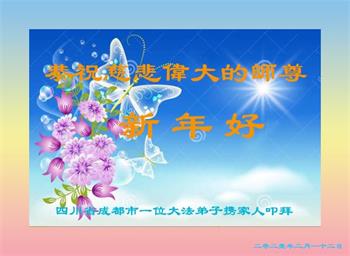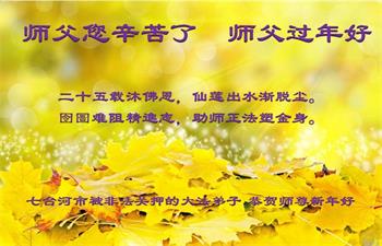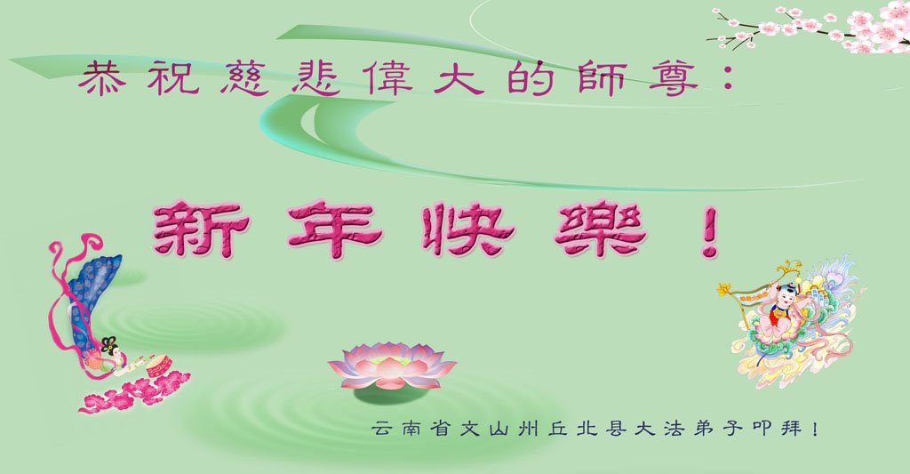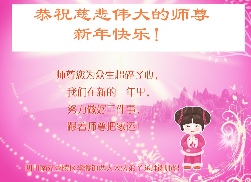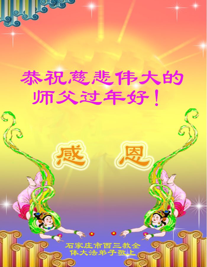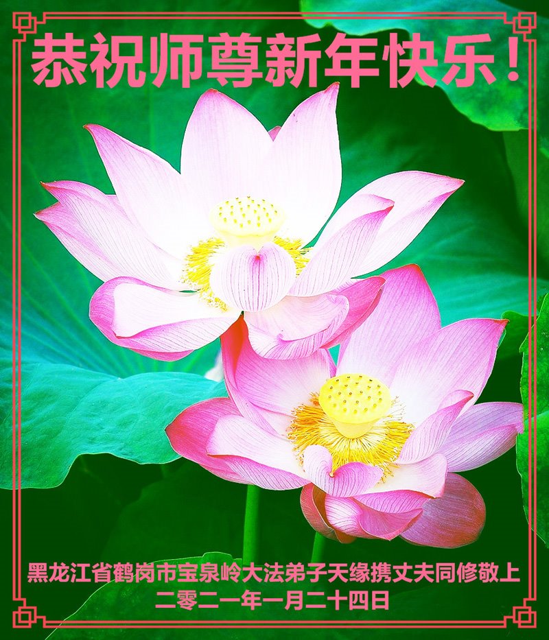 在这寰宇更新的伟大时刻,您用巨大的付出与承受为我们换来了新的一年,为了让更多的世人了解真相、有个美好的未来,我虽然深陷囹圄,无论身处何处,我都能感受到师父慈悲的保护,遇到的任何人都是我们要救度的生命。师父!在哪里我都会学好法,炼功发正念。在法中提高,在修炼中升华,去掉各种人心与执着,兑现史前誓约!让师尊少一份操劳,多一份欣慰!
