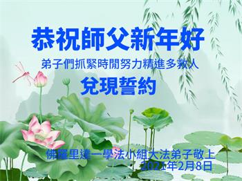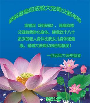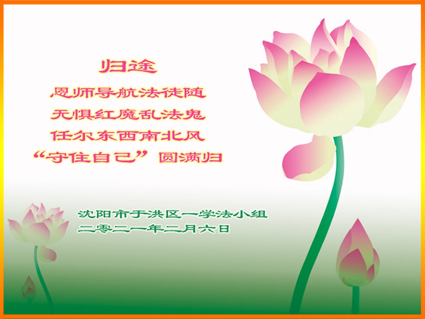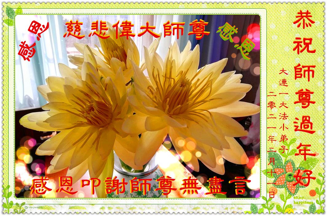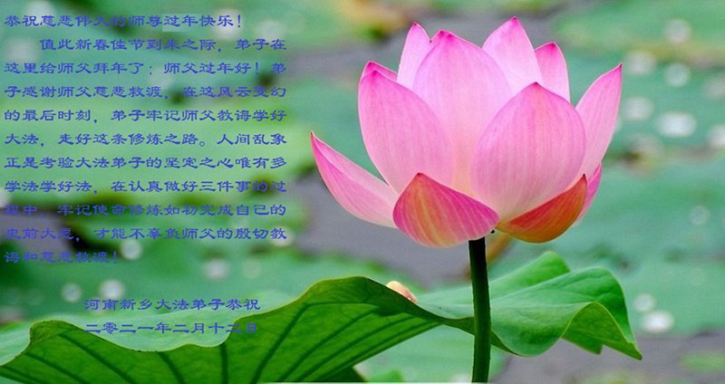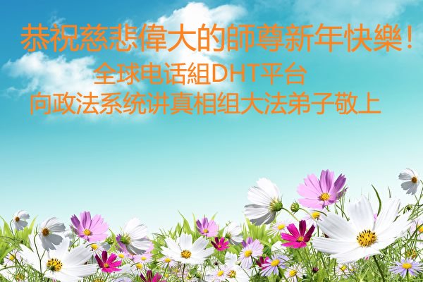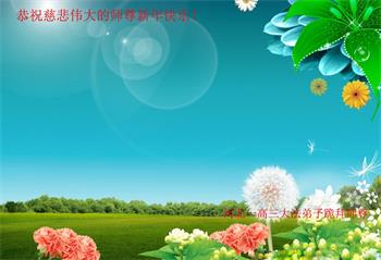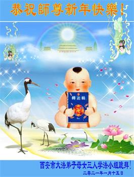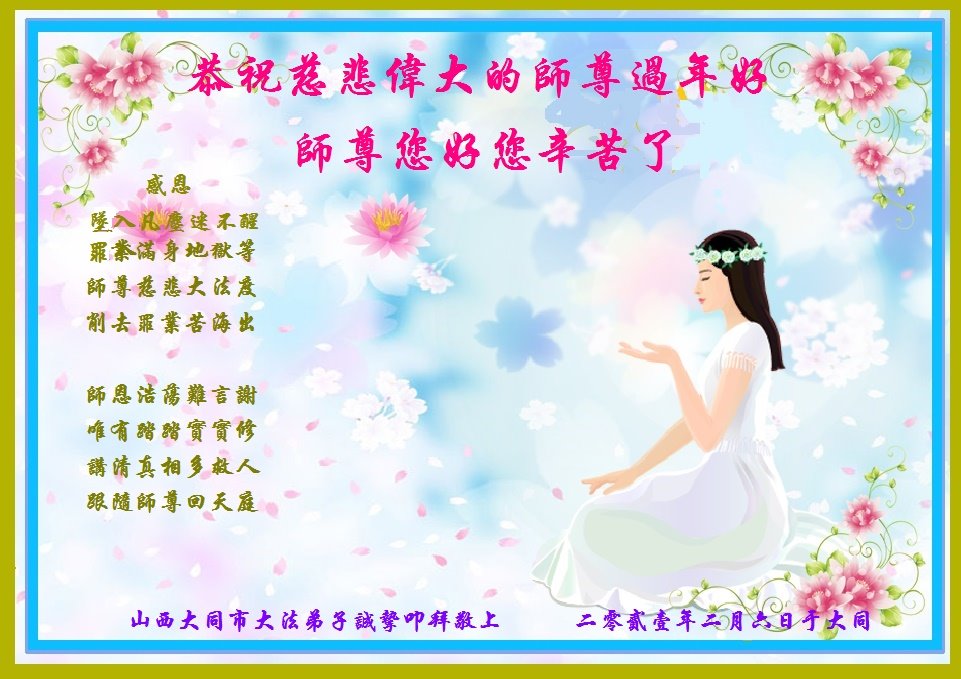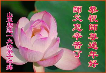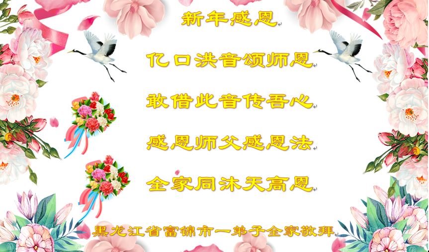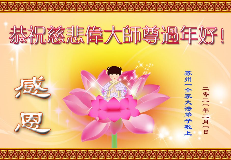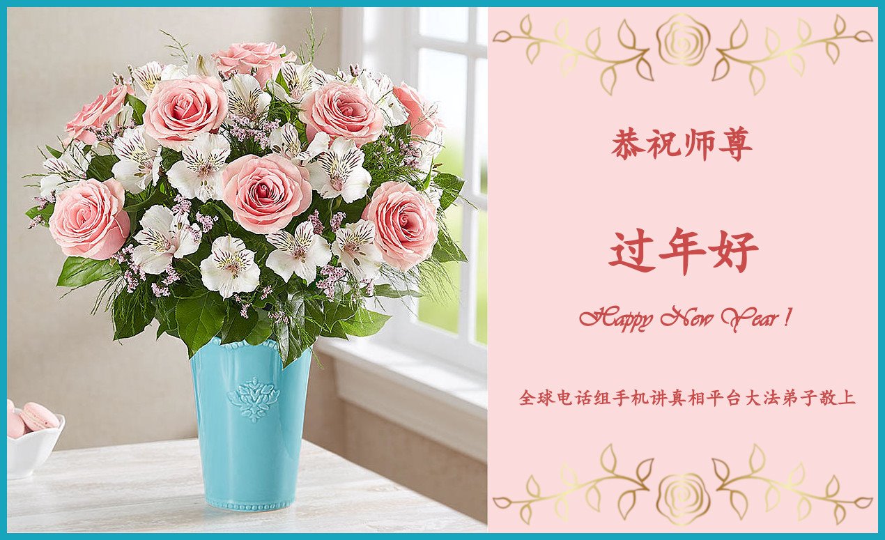 在这寰宇更新的伟大时刻,您用巨大的付出与承受为我们换来了新的一年,为了让更多的世人了解真相、有个美好的未来,我虽然深陷囹圄,无论身处何处,我都能感受到师父慈悲的保护,遇到的任何人都是我们要救度的生命。师父!在哪里我都会学好法,炼功发正念。在法中提高,在修炼中升华,去掉各种人心与执着,兑现史前誓约!让师尊少一份操劳,多一份欣慰!