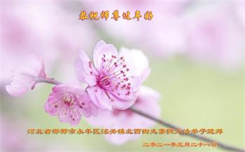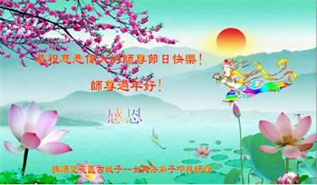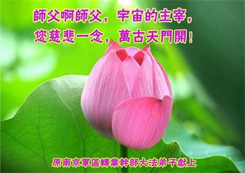 师尊您好!弟子虽然身陷邪党的牢笼,但是弟子时时刻刻都能感受到师父就在弟子身边,看护着弟子,给弟子以无穷的力量!在邪恶的黑窝里,弟子依然不忘自己的神圣使命,向身边的人们讲述着真相,让他们能够得到师父的慈悲救度!弟子相信与师父团聚的日子不远了!