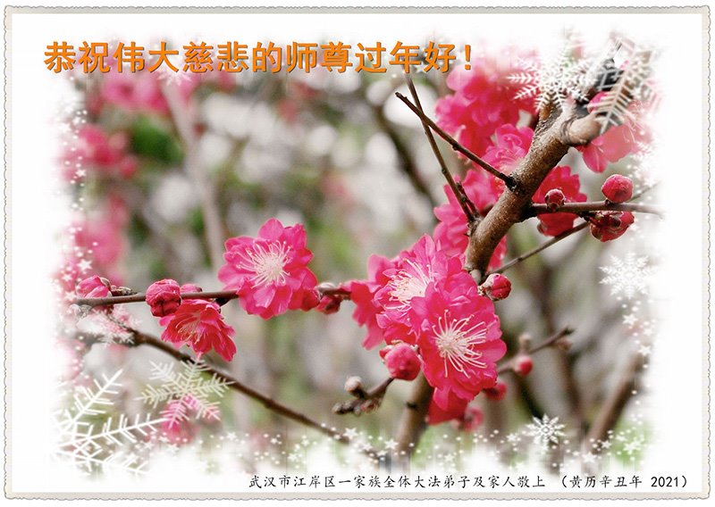 冬去春来梅如故 被非法关押中的弟子遥拜师尊 【明慧网二零二一年二月十二日】法轮大法是佛法修炼,大法弟子们顶着中共残酷的迫害,向人们讲述了20多年的真相,只为中国人有一个平安美好的未来。中国大陆各省市看守所、监狱、洗脑班至今非法关押着众多修心向善的大法弟子。在二零二一年大年来临之际,中国各地被非法关押的大法弟子以各种方式传出他们对师父的问候。铁窗关住了大法弟子的自由,却改变不了他们坚定的信仰。