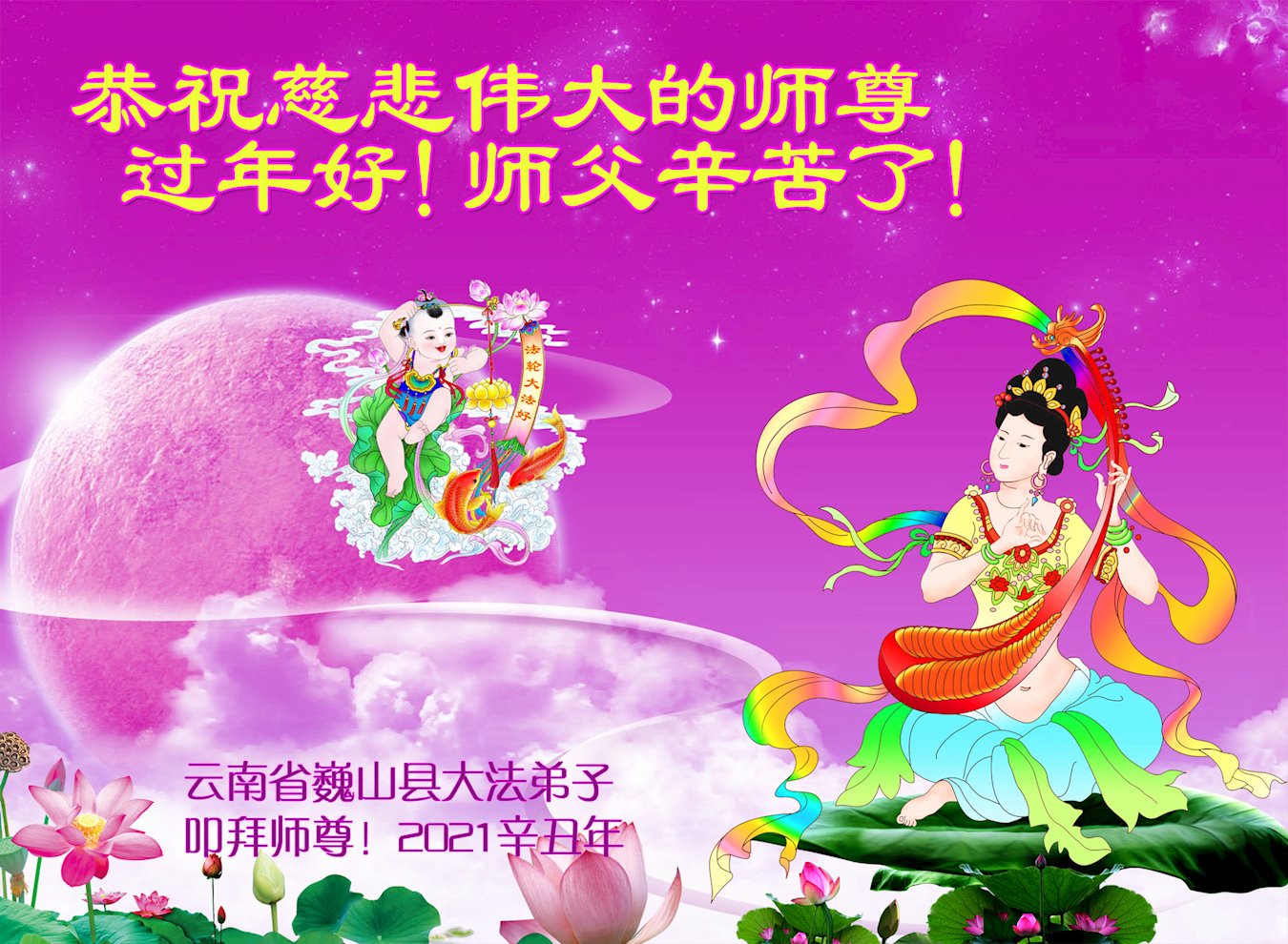 吉林省吉林市永吉县大法弟子恭祝师尊过年好!慈悲伟大的师尊过年好!