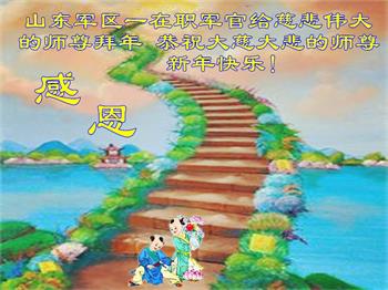 以下为来自陕西、山西、广州军区、成都军区、南京军区、东部战区、新疆兵团、山东军区、二炮、北京空军、总参、江苏镇江、北京军委后保部、军总医院等部的现役和转业军人大法弟子敬致恩师的部份贺信。