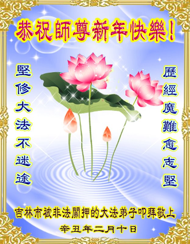 吉林省被非法关押的大法弟子感恩师尊慈悲救度!恭祝师尊新年快乐!