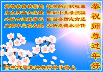 吉林省吉林市被非法关押的大法弟子向慈悲伟大的师尊叩拜!恭祝师尊过年好!