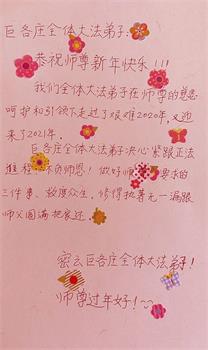 被非法关押在山东省女子监狱的大法弟子恭祝慈悲伟大的师尊过年好!