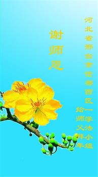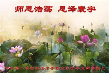 感恩师尊为我破迷津, 感恩大法去我执着心, 酷刑加身我背《转法轮》, 信师精進随师步天庭。