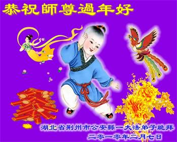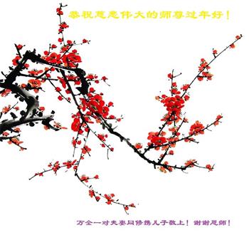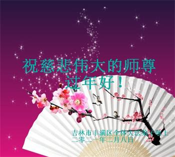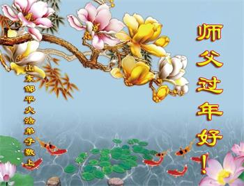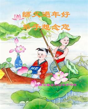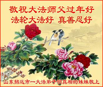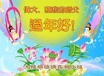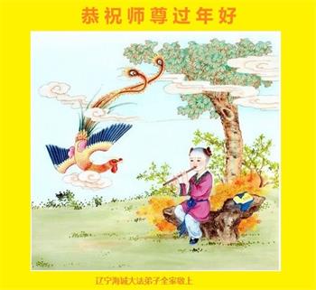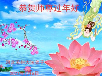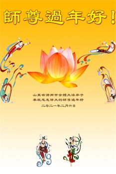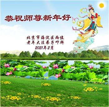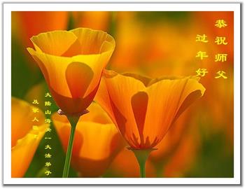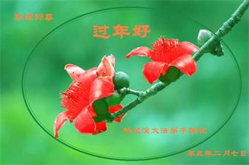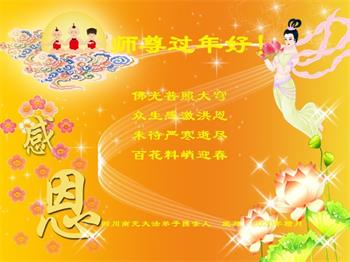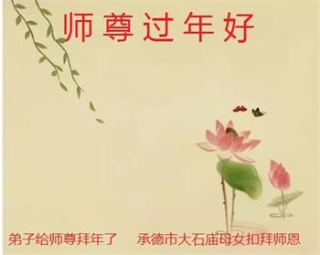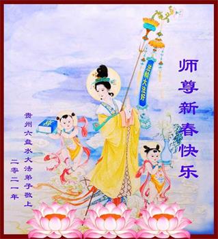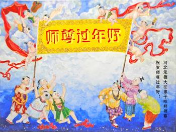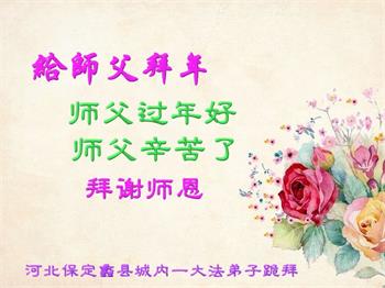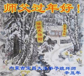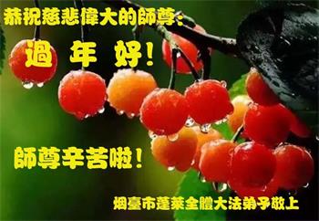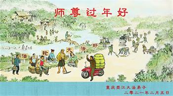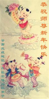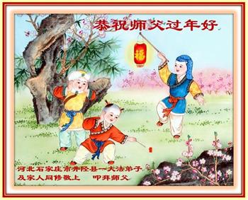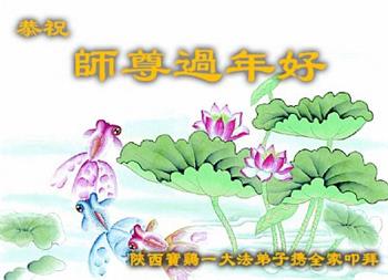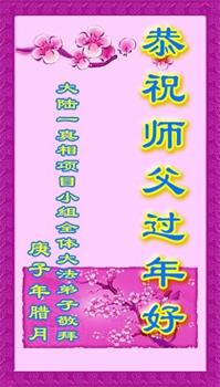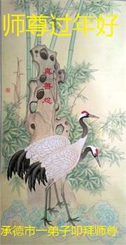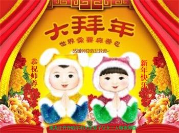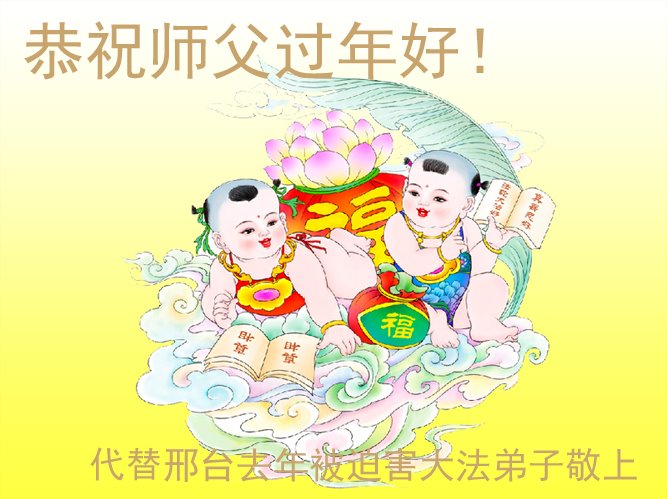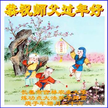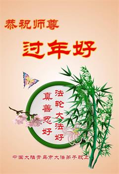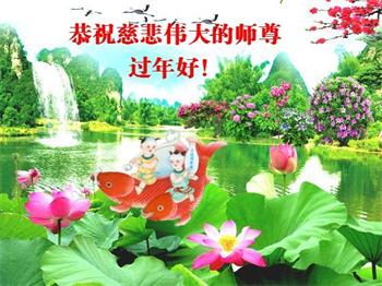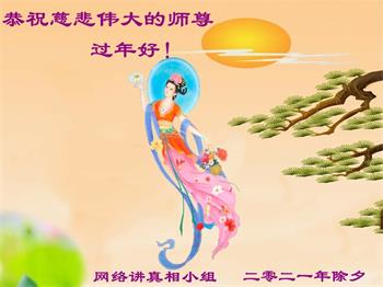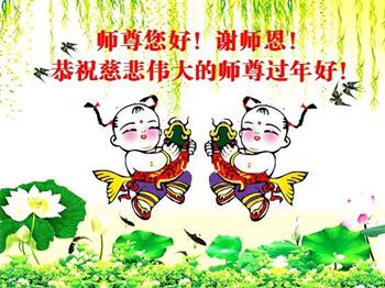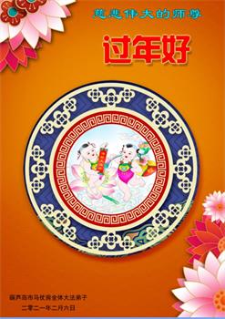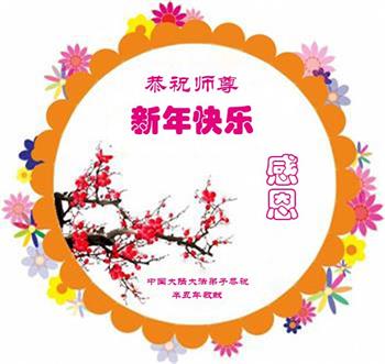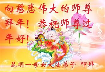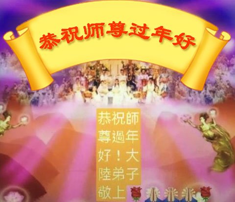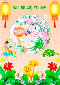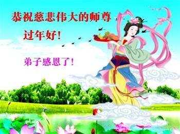 ![]() 图6:法轮功学员阿容向师尊拜年。 |