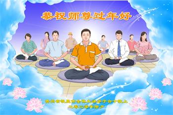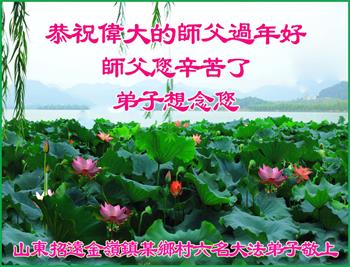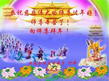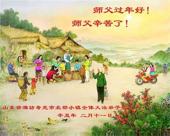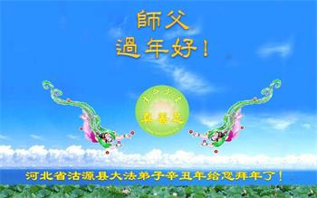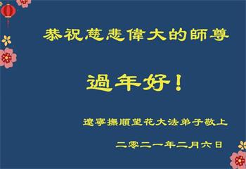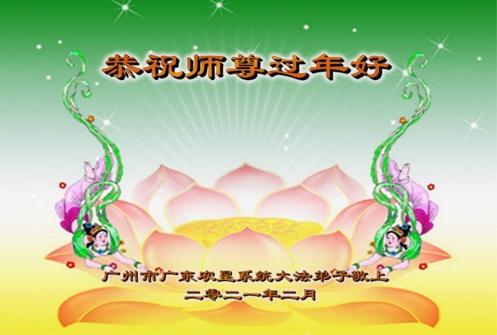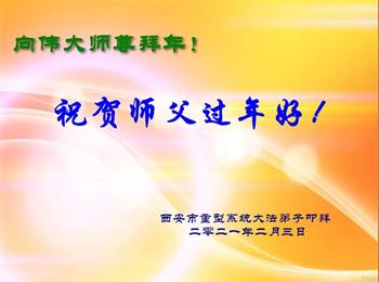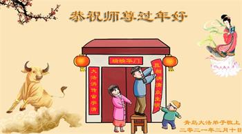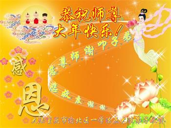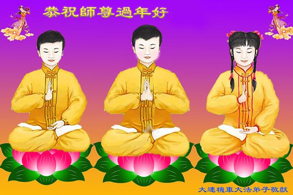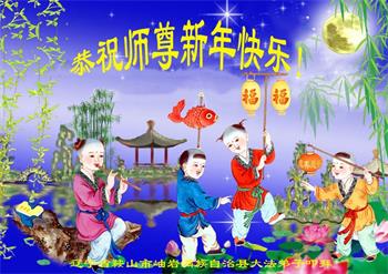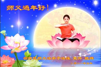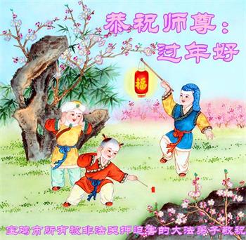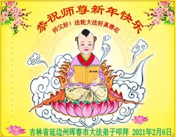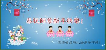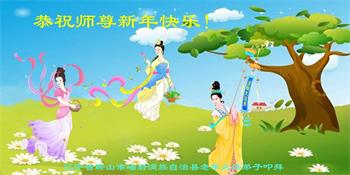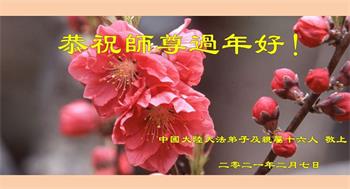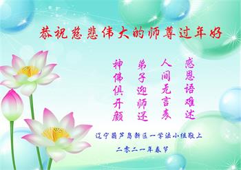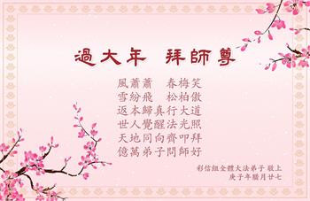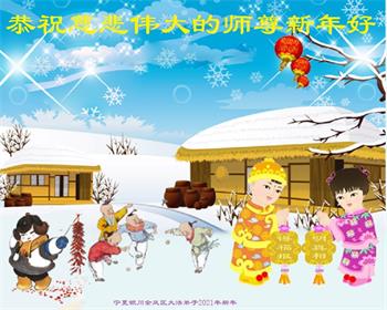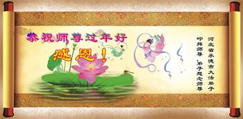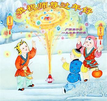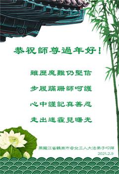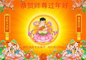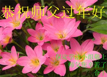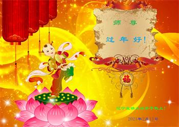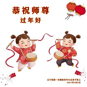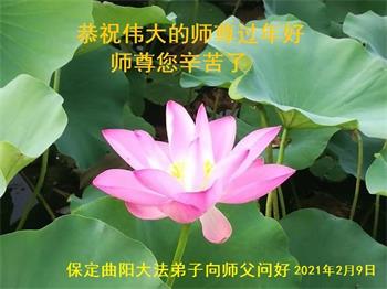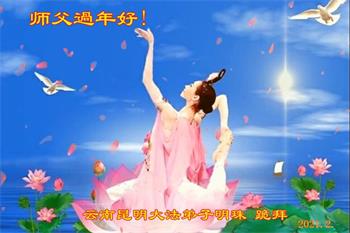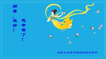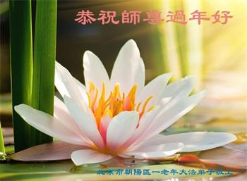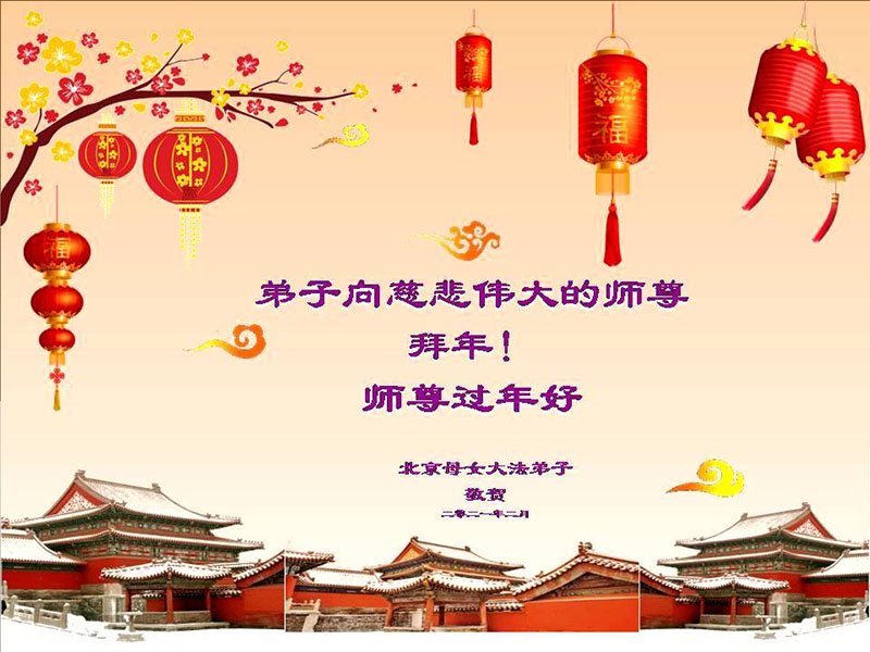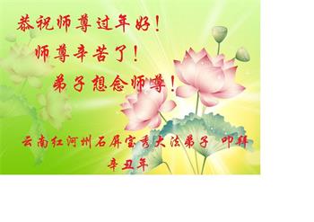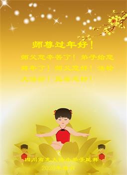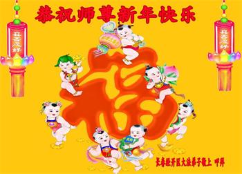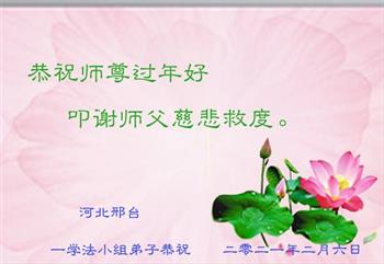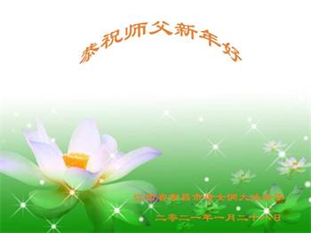 ![]() 图6:法轮功学员阿容向师尊拜年。 |