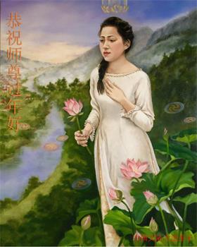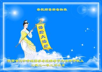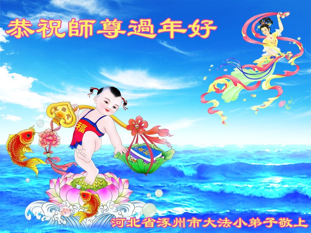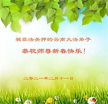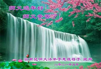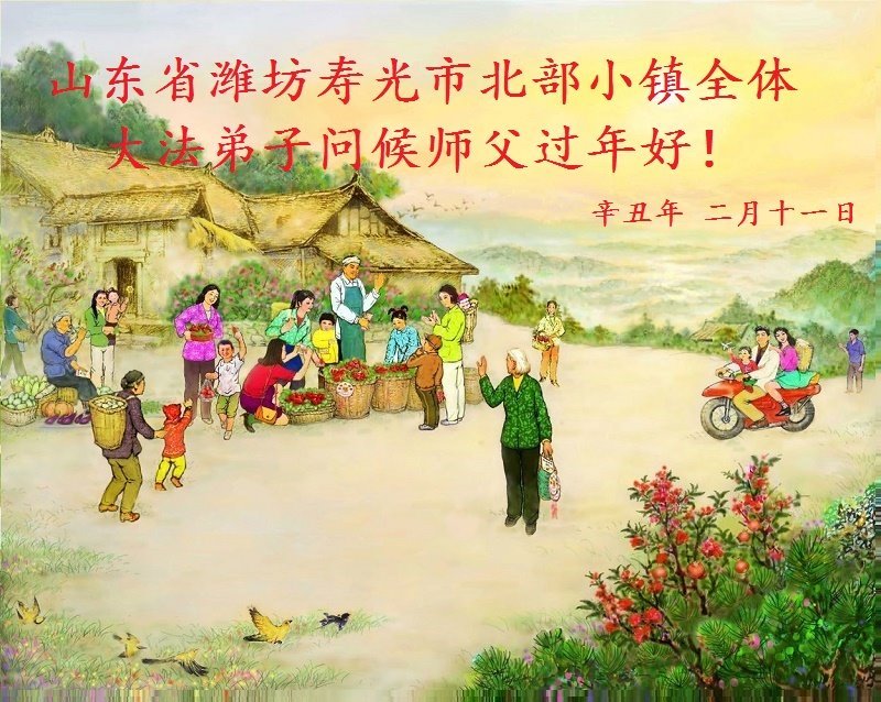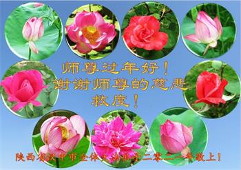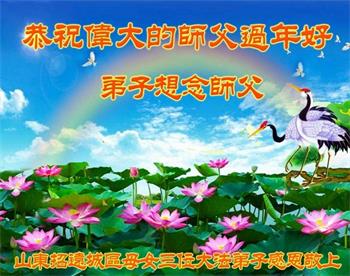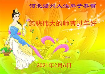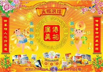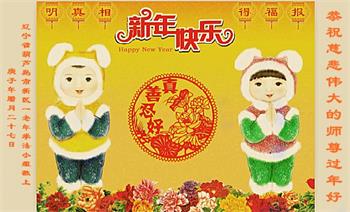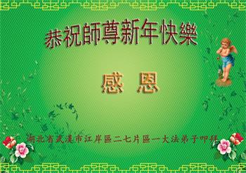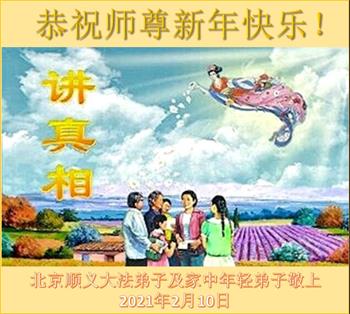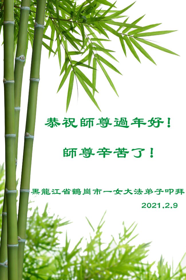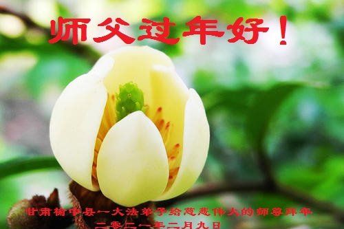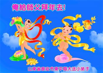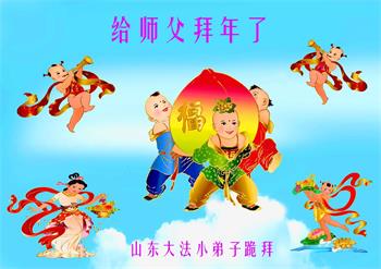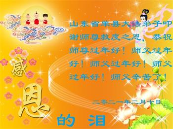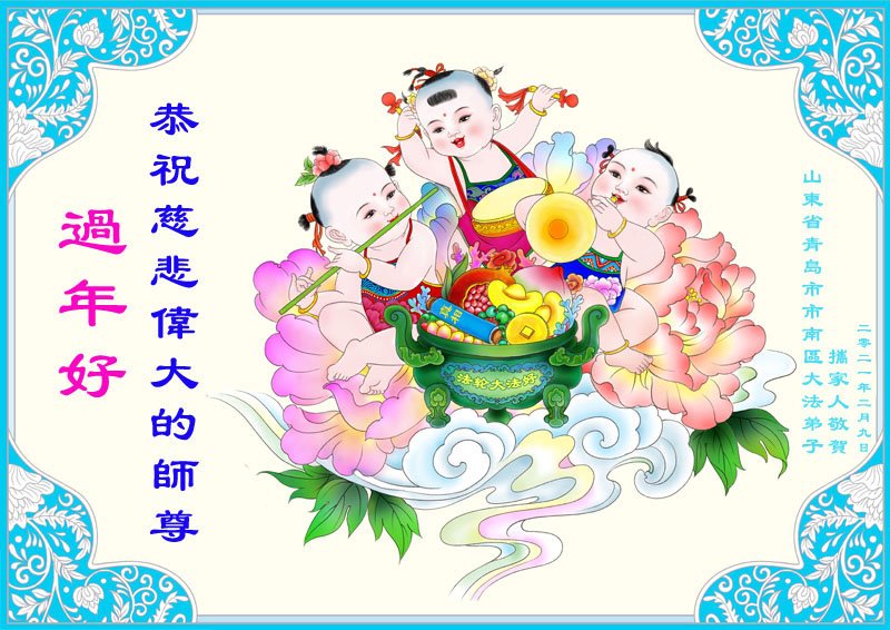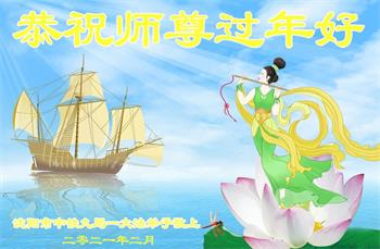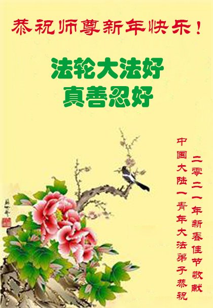 ![]() 图6:法轮功学员阿容向师尊拜年。 |