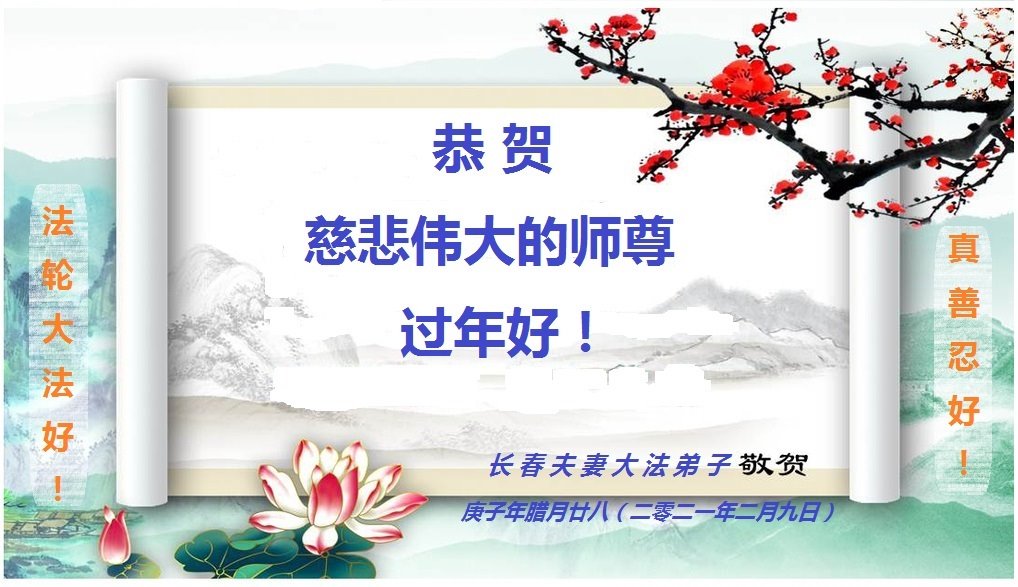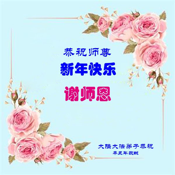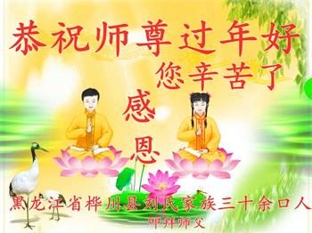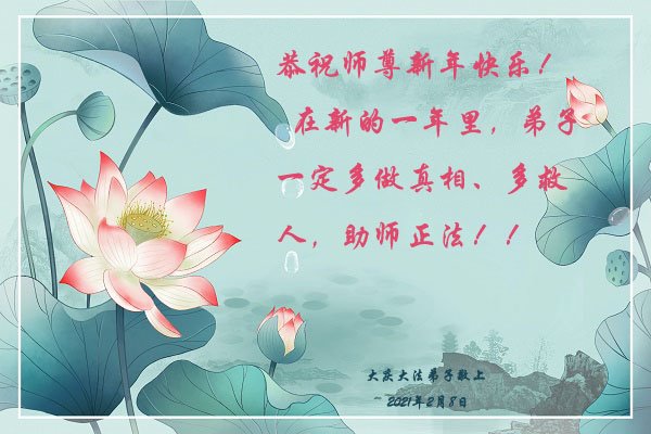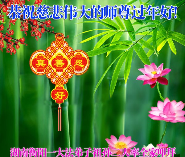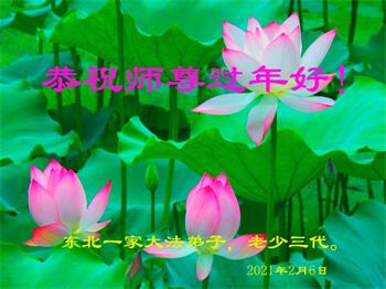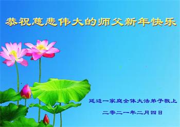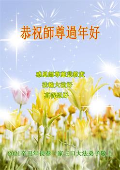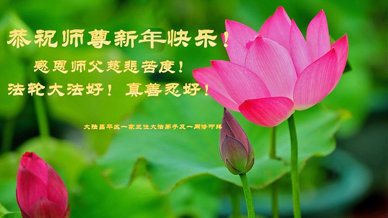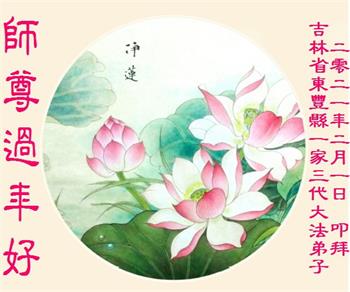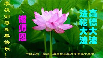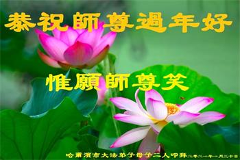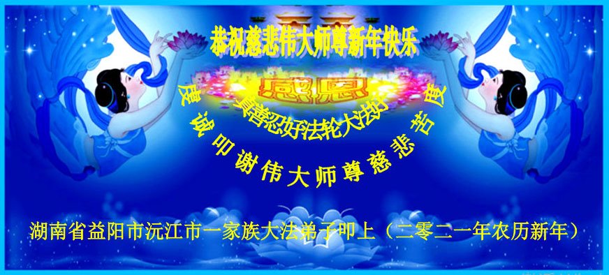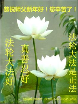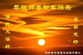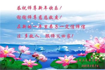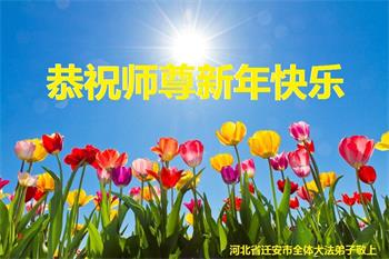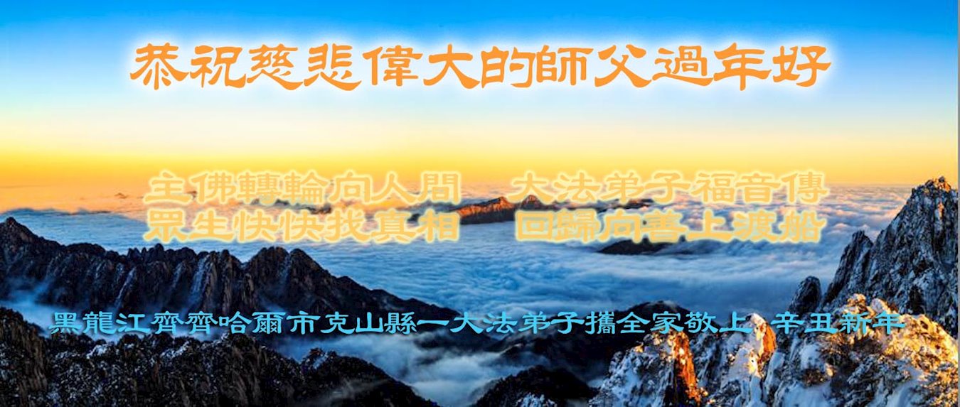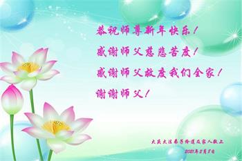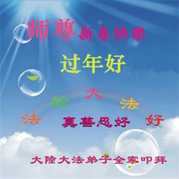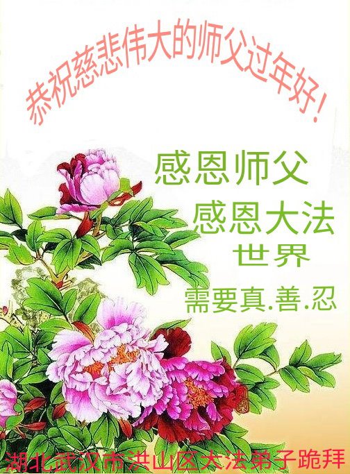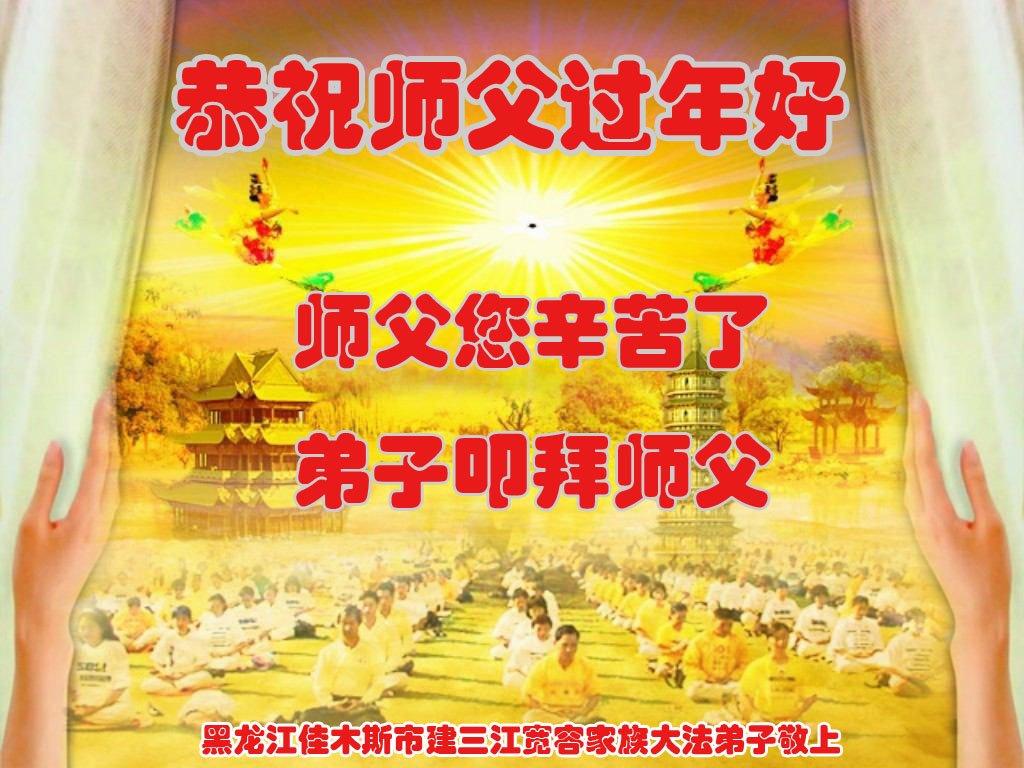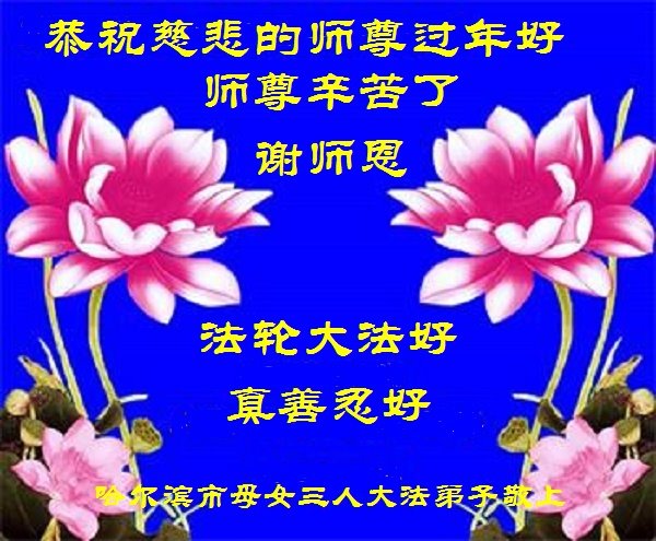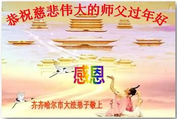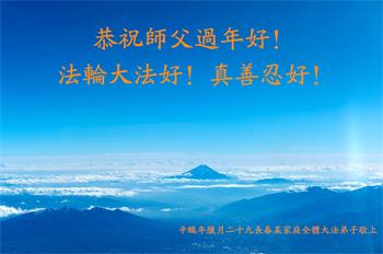 在新年到来之际,我和全家人恭祝大法师父新年好!感谢师父的救命之恩!师父您辛苦了!我们坚信“法轮大法好,真善忍好”,法轮大法是正法,是福泽众生的高德大法。再次感恩师父的慈悲救度!