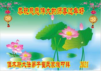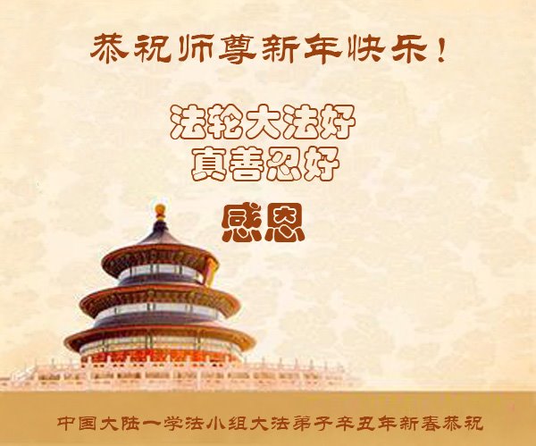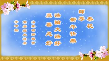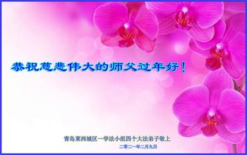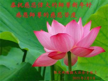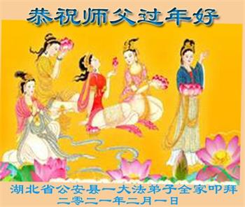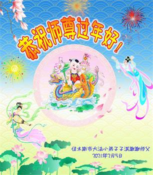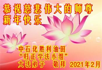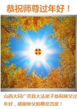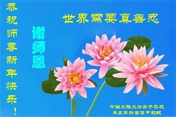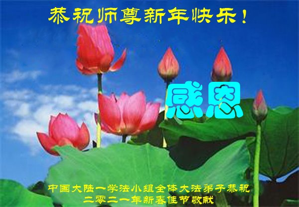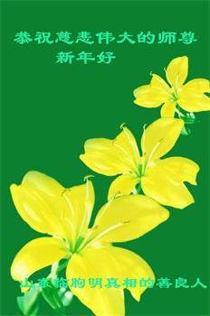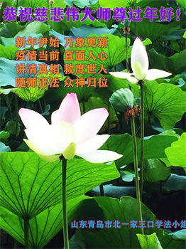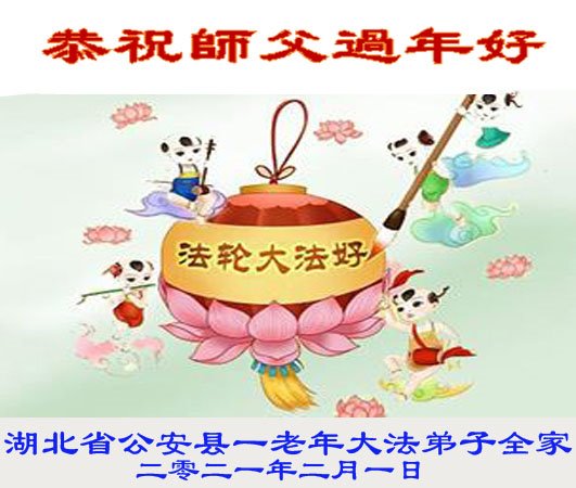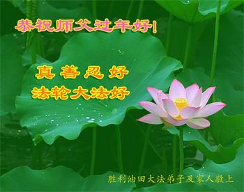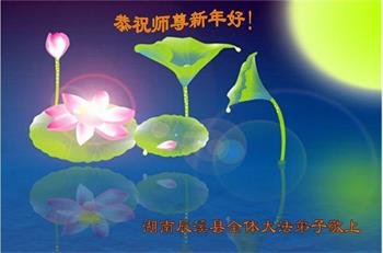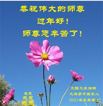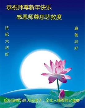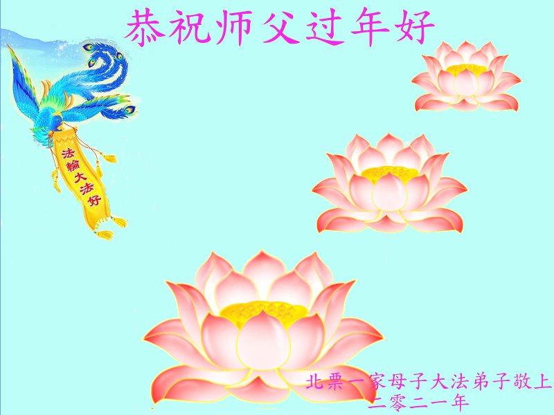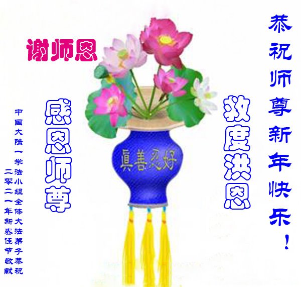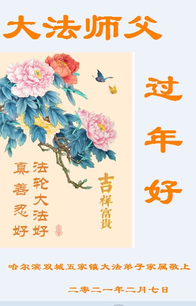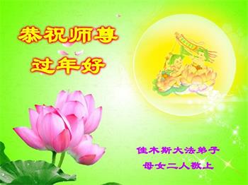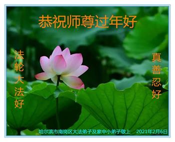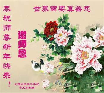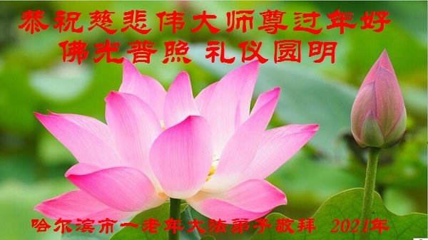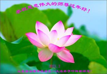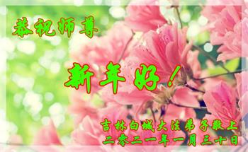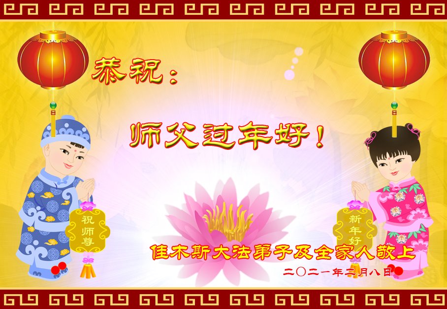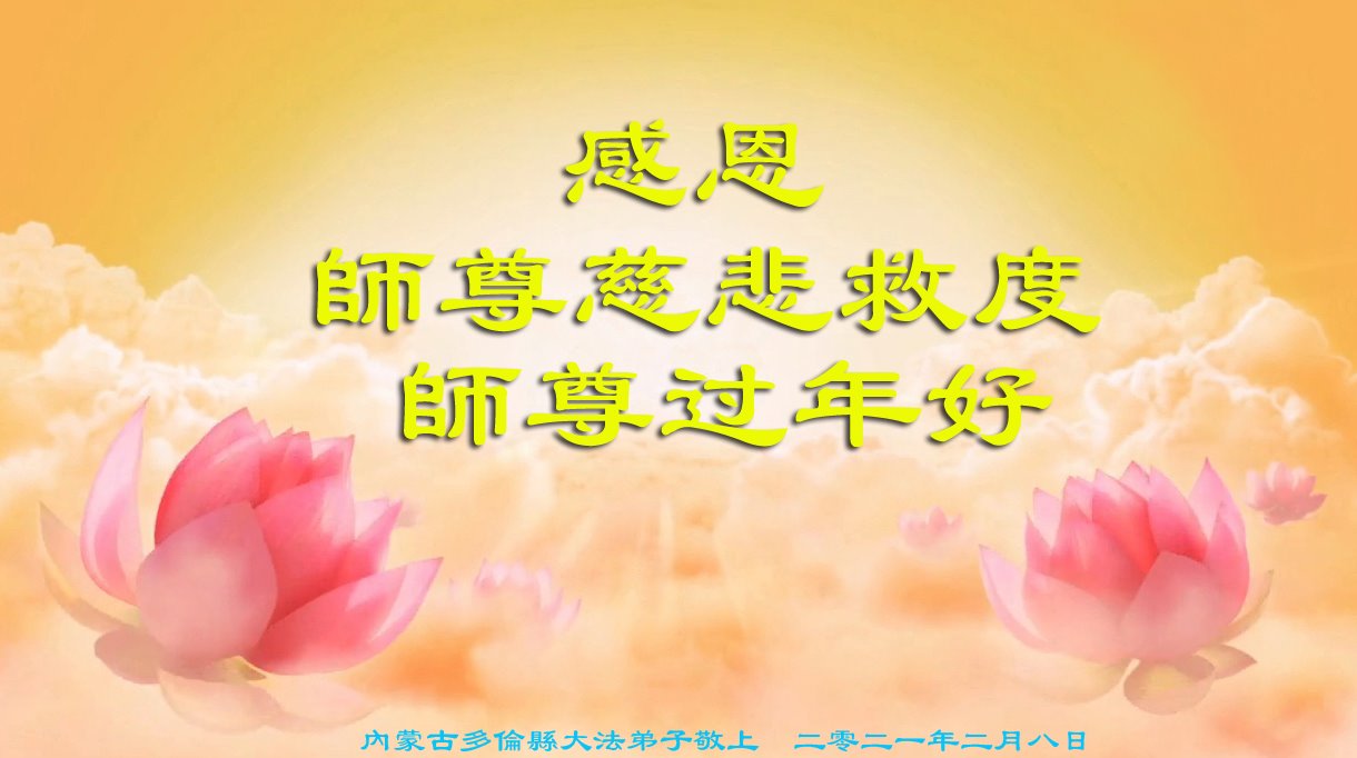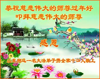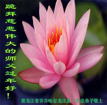 在新年到来之际,我和全家人恭祝大法师父新年好!感谢师父的救命之恩!师父您辛苦了!我们坚信“法轮大法好,真善忍好”,法轮大法是正法,是福泽众生的高德大法。再次感恩师父的慈悲救度!