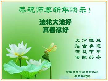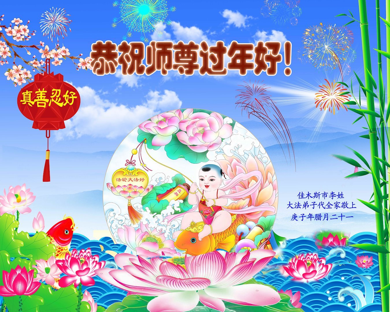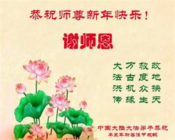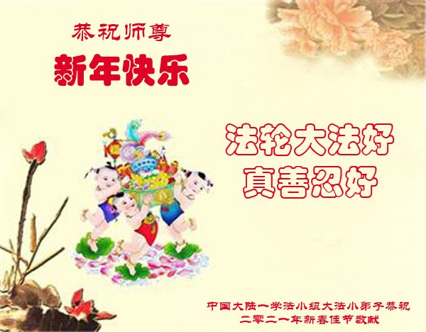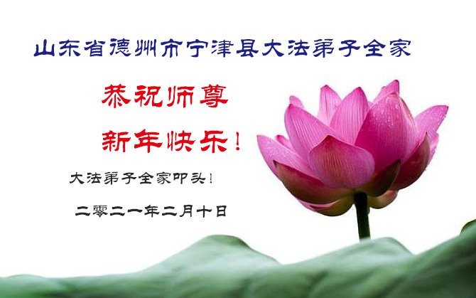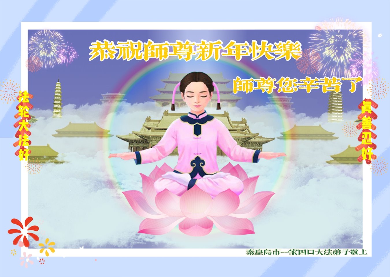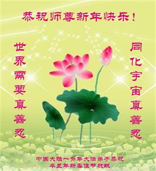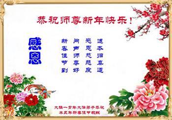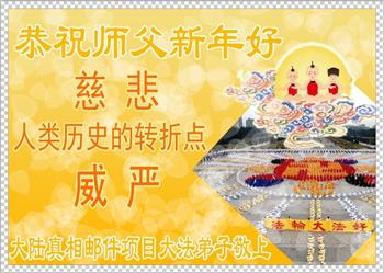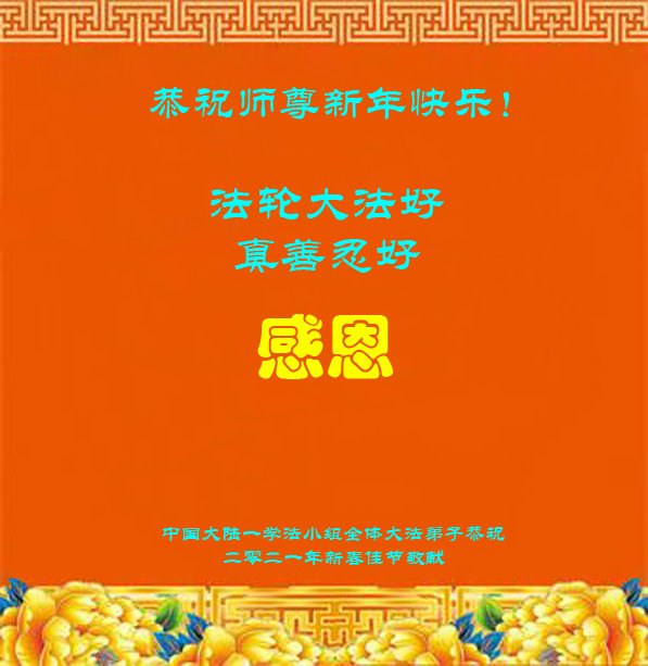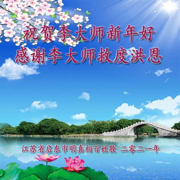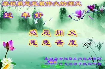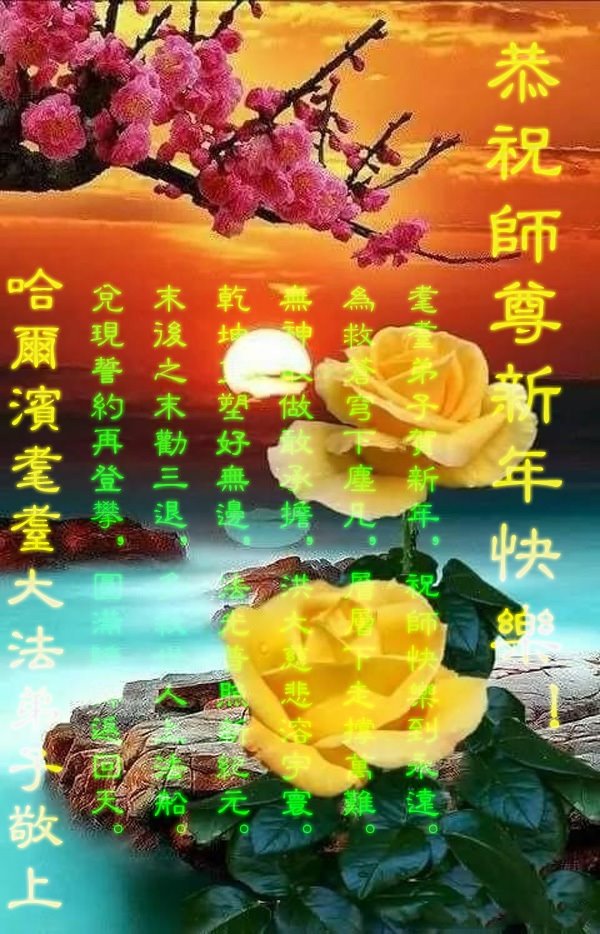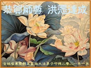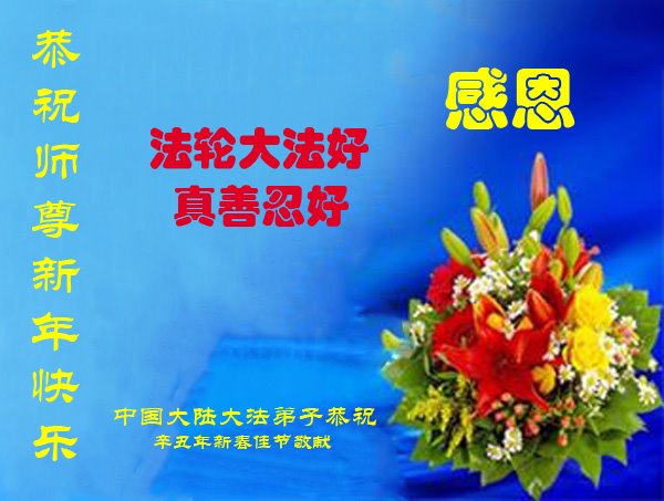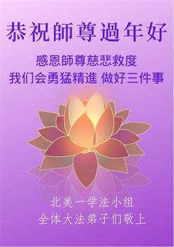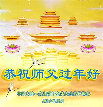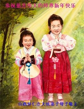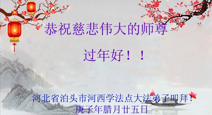 在新年到来之际,我和全家人恭祝大法师父新年好!感谢师父的救命之恩!师父您辛苦了!我们坚信“法轮大法好,真善忍好”,法轮大法是正法,是福泽众生的高德大法。再次感恩师父的慈悲救度!