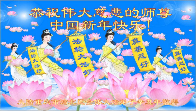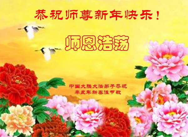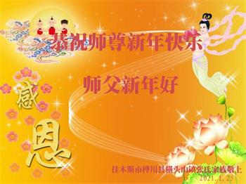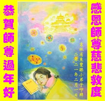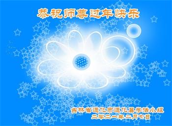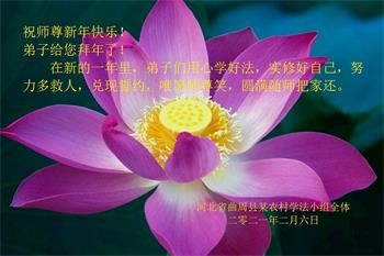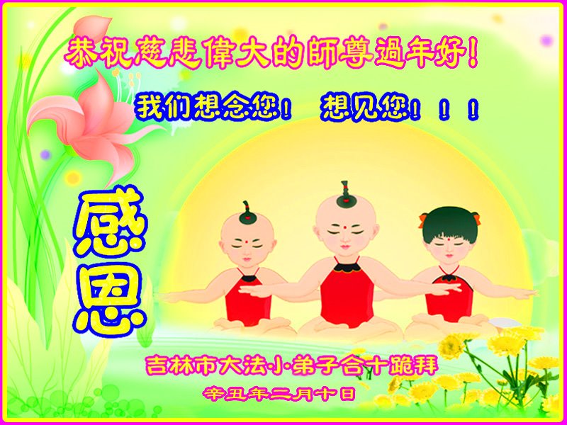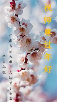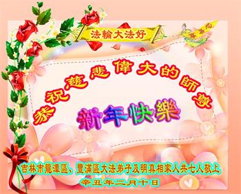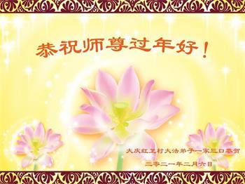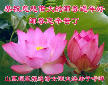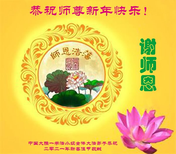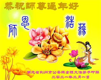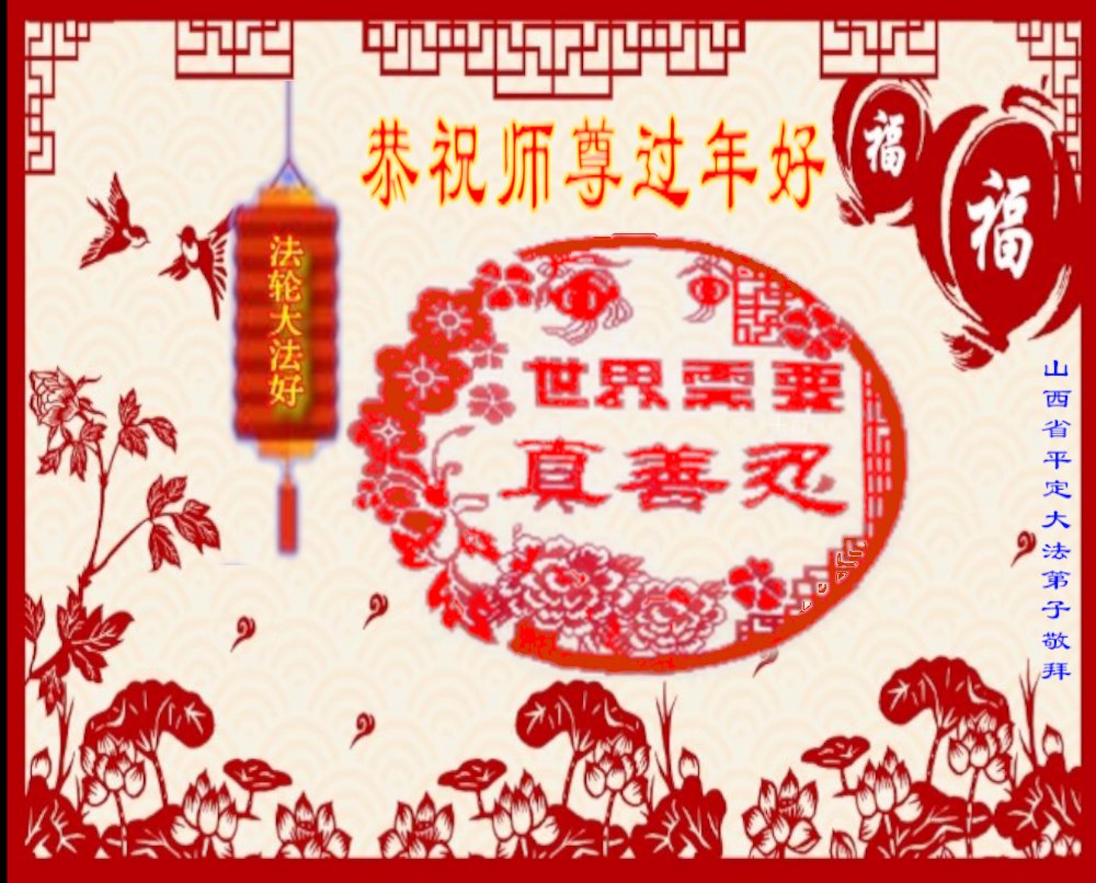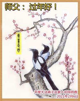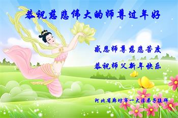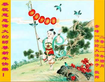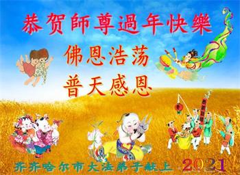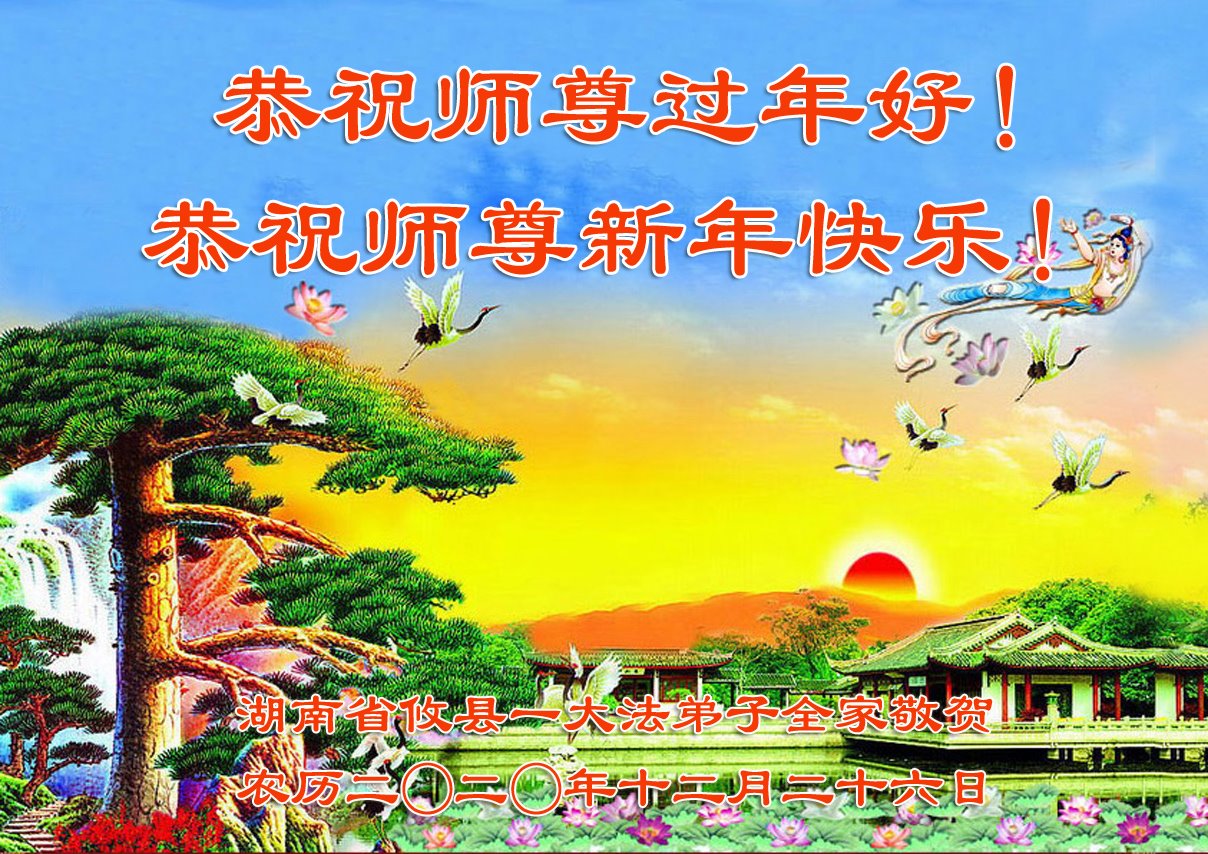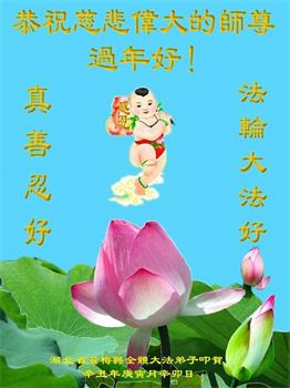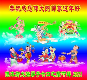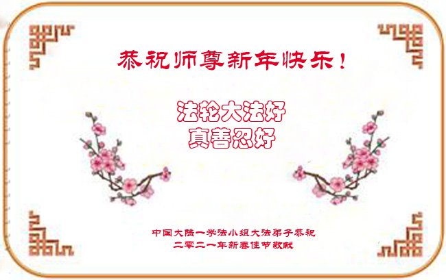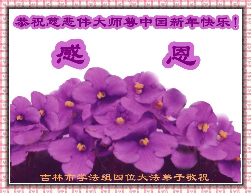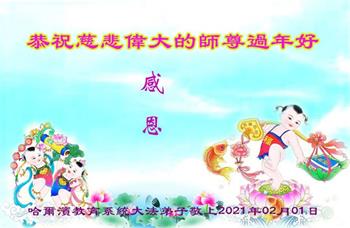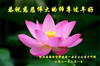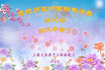在新年到来之际,我和全家人恭祝大法师父新年好!感谢师父的救命之恩!师父您辛苦了!我们坚信“法轮大法好,真善忍好”,法轮大法是正法,是福泽众生的高德大法。再次感恩师父的慈悲救度!