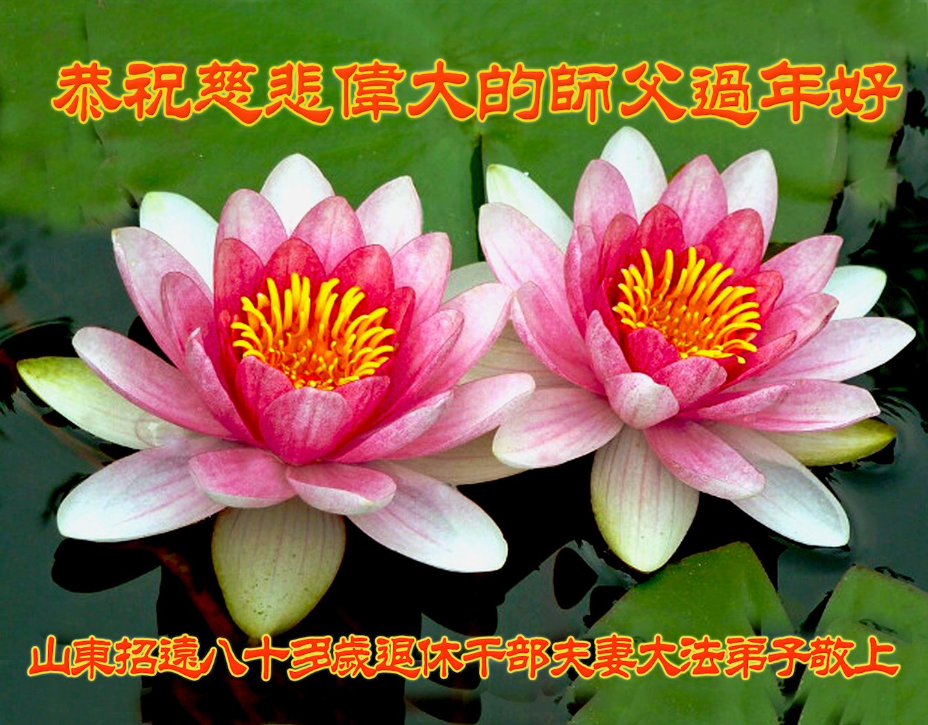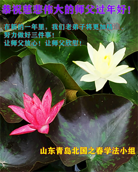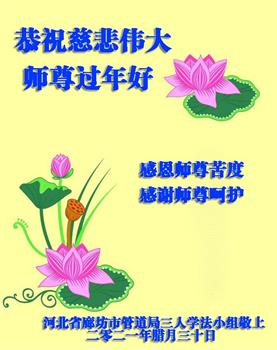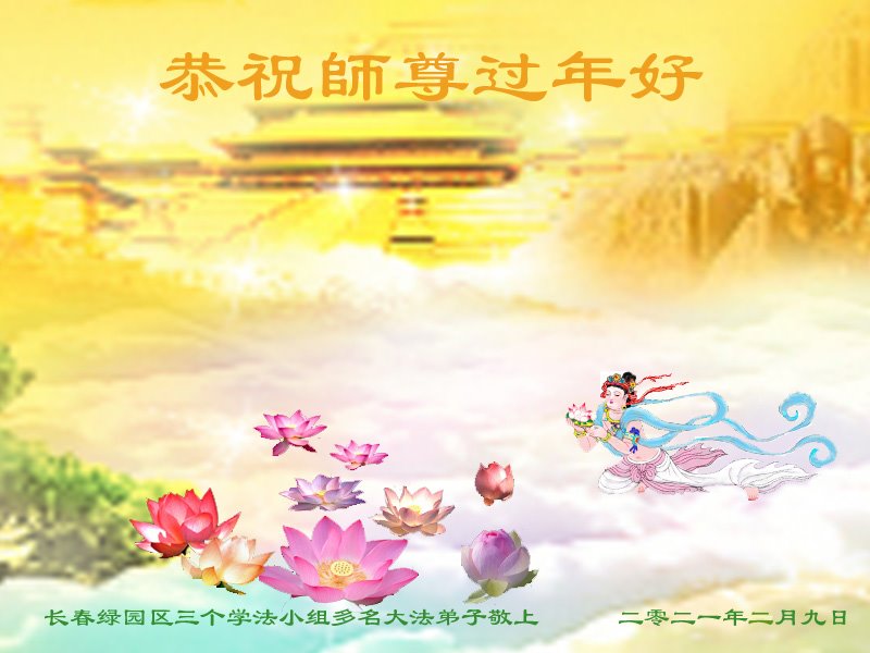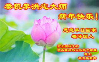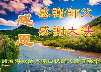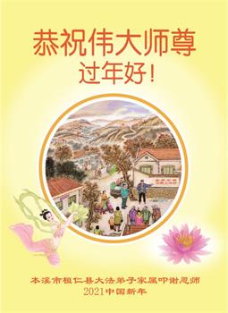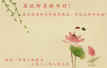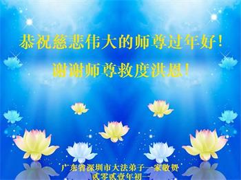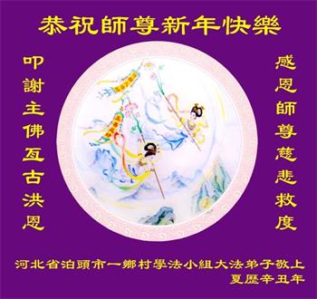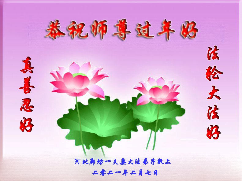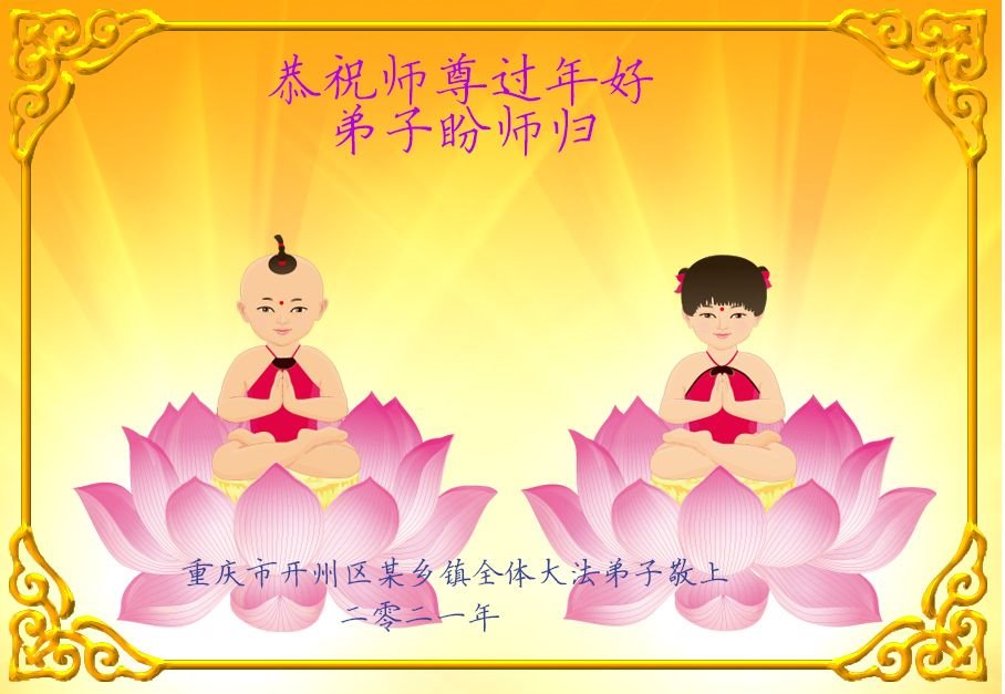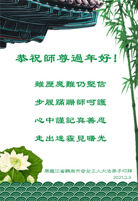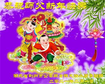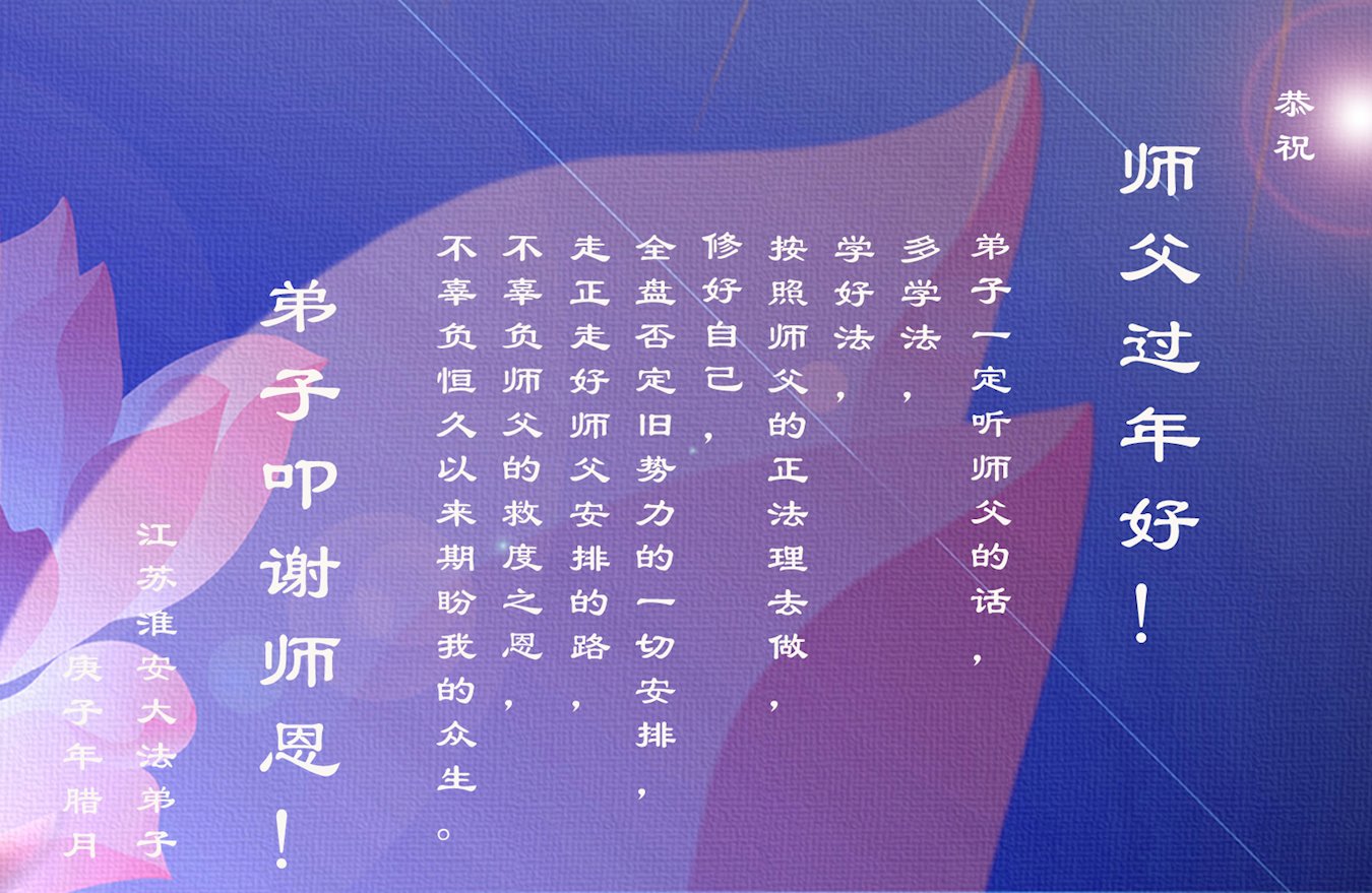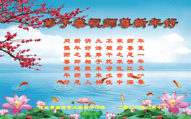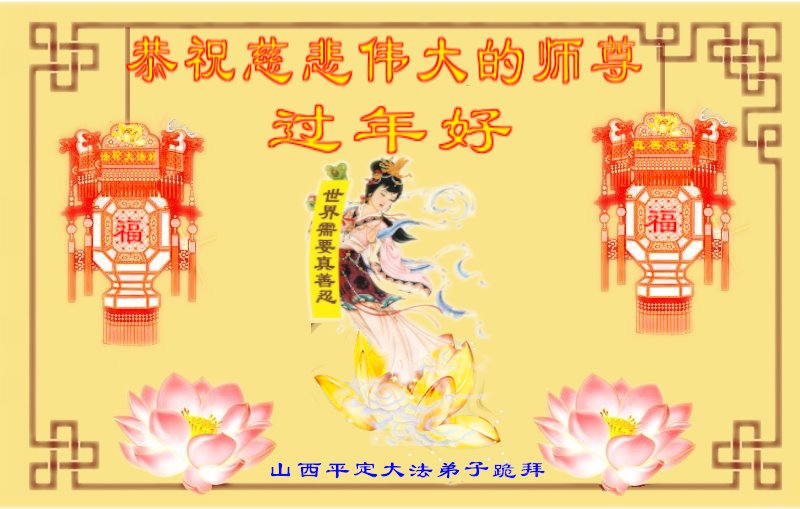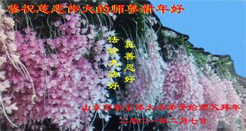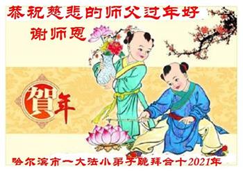 在新年到来之际,我和全家人恭祝大法师父新年好!感谢师父的救命之恩!师父您辛苦了!我们坚信“法轮大法好,真善忍好”,法轮大法是正法,是福泽众生的高德大法。再次感恩师父的慈悲救度!