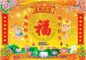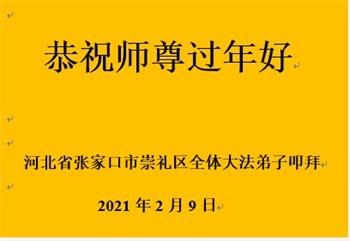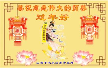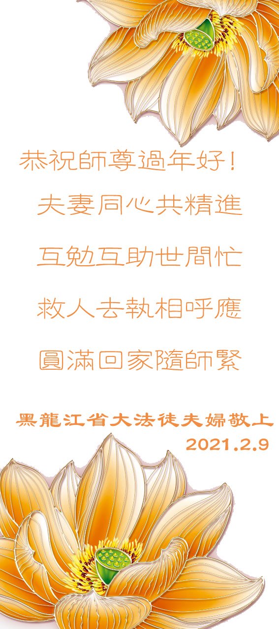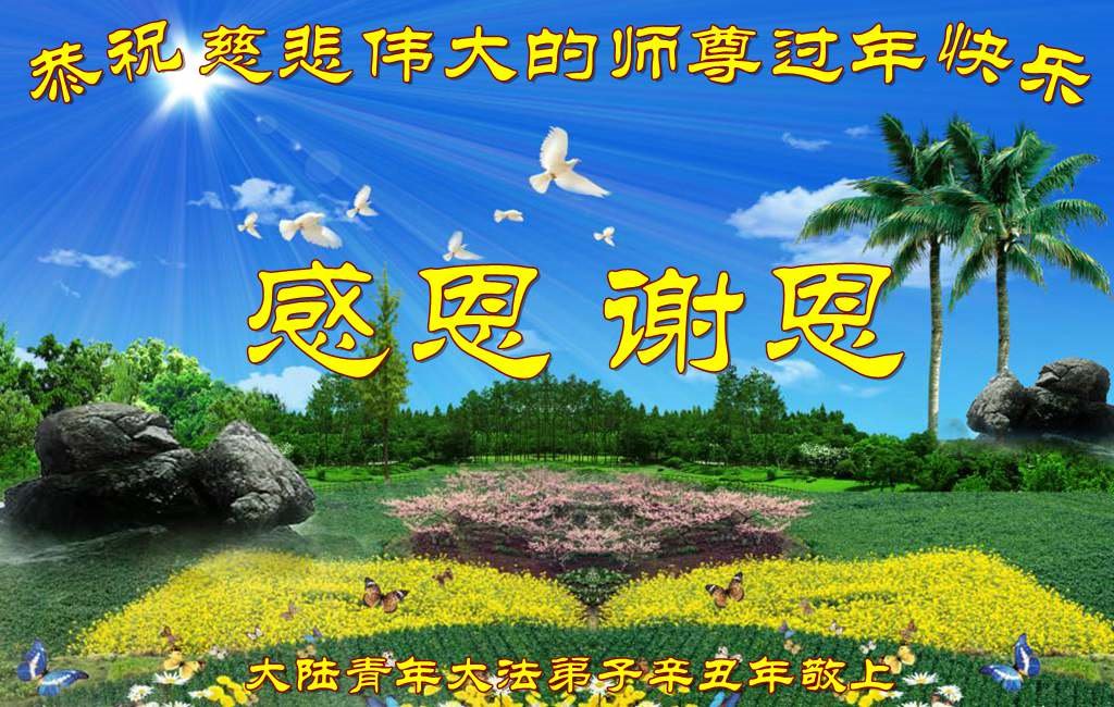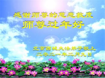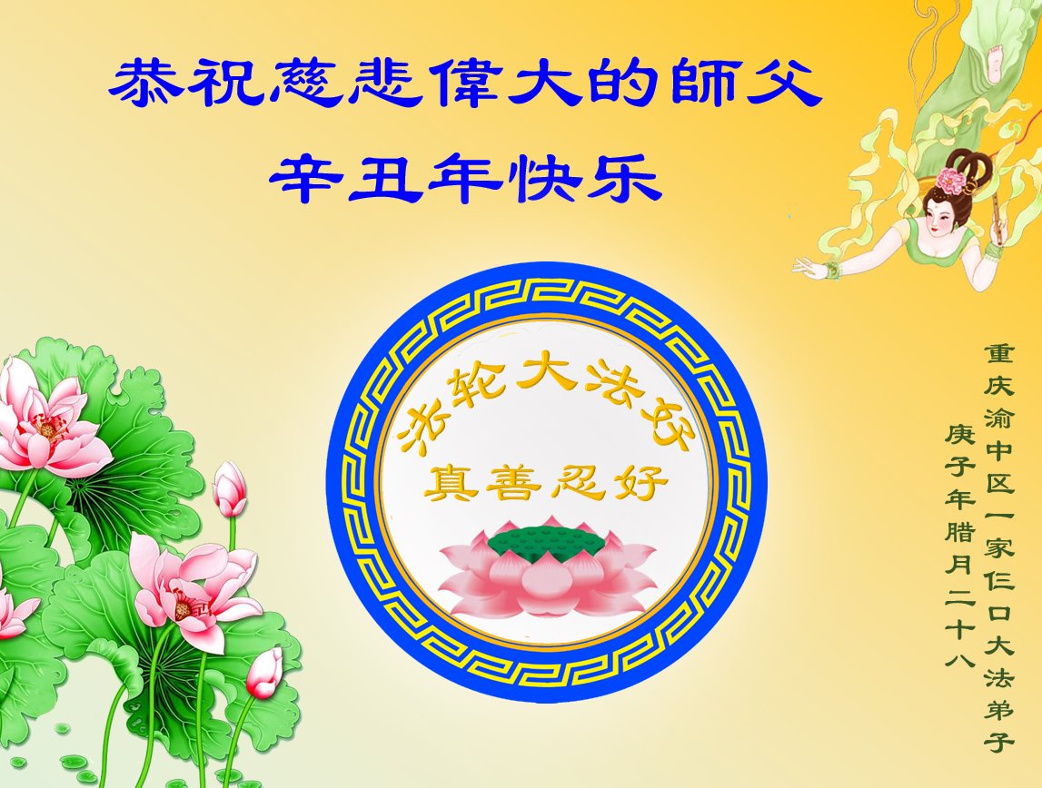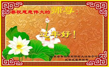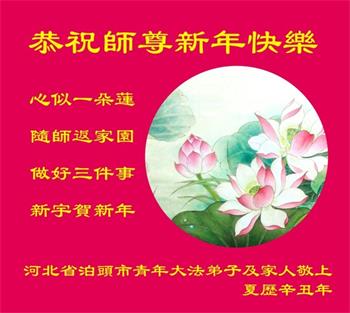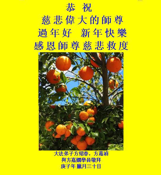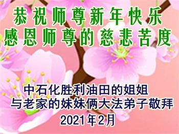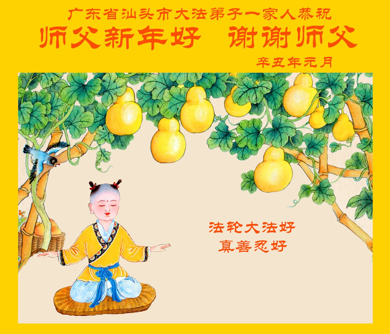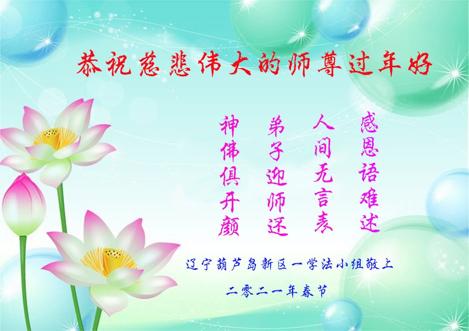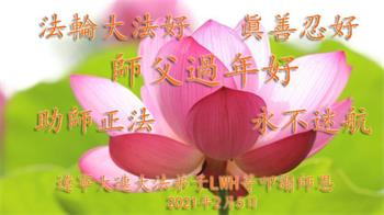 在新年到来之际,我和全家人恭祝大法师父新年好!感谢师父的救命之恩!师父您辛苦了!我们坚信“法轮大法好,真善忍好”,法轮大法是正法,是福泽众生的高德大法。再次感恩师父的慈悲救度!