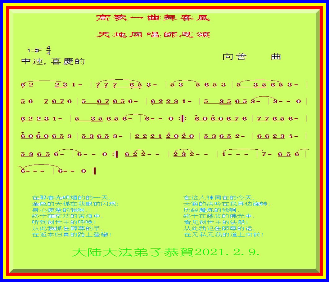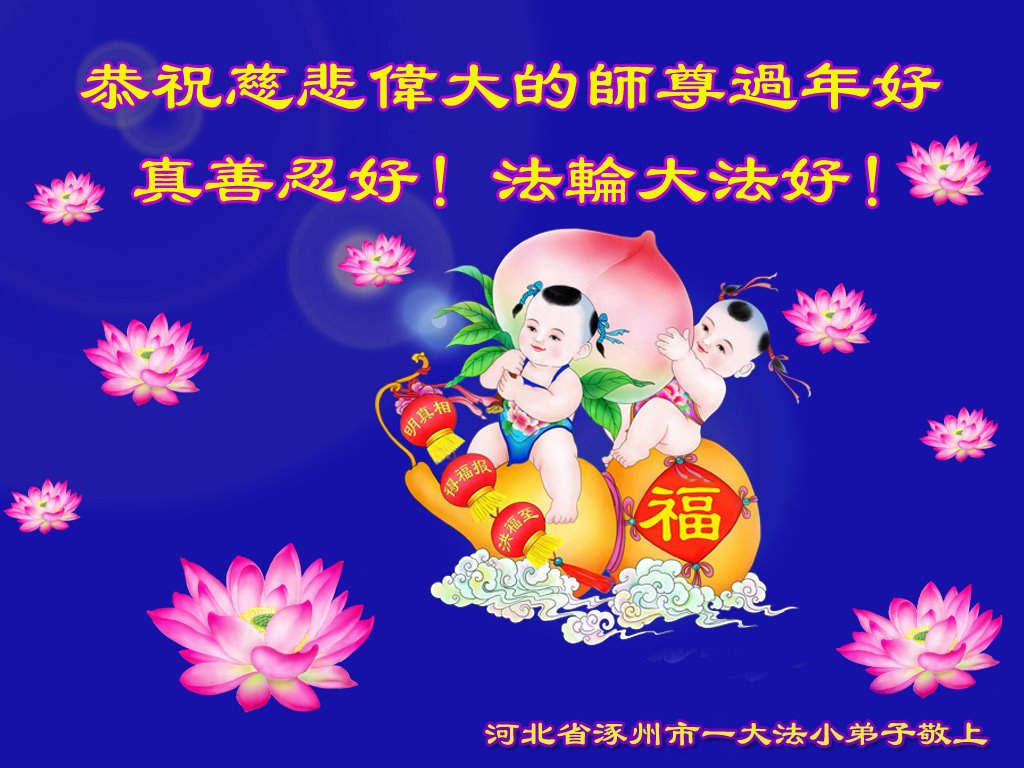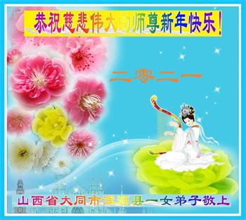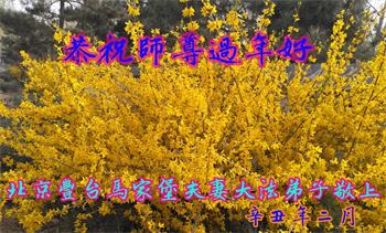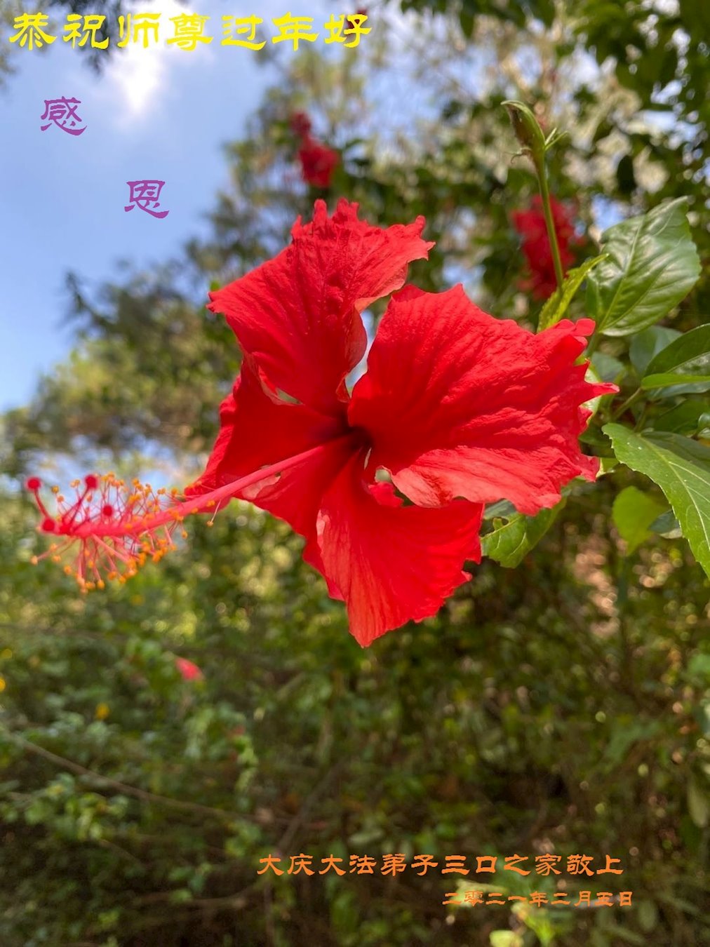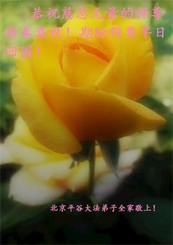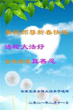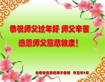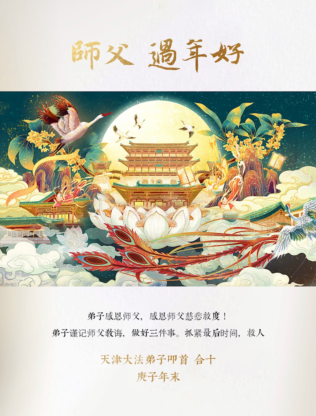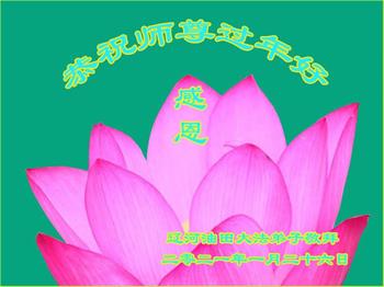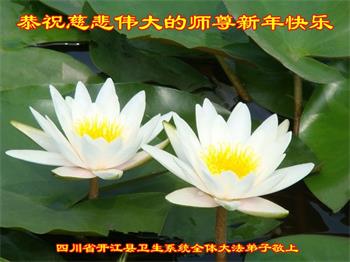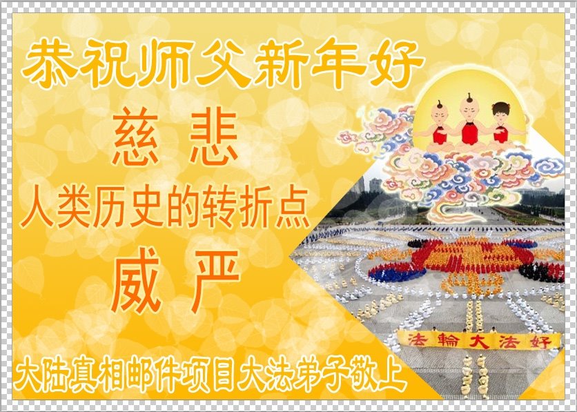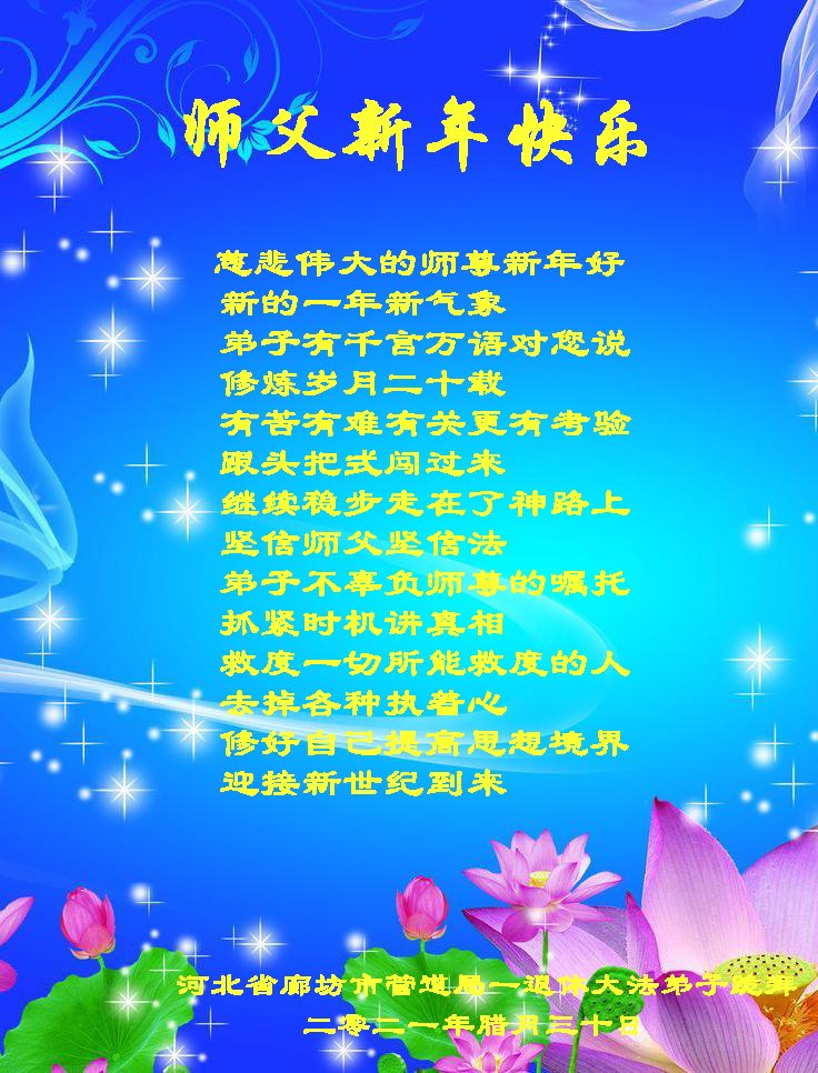 在新年到来之际,我和全家人恭祝大法师父新年好!感谢师父的救命之恩!师父您辛苦了!我们坚信“法轮大法好,真善忍好”,法轮大法是正法,是福泽众生的高德大法。再次感恩师父的慈悲救度!