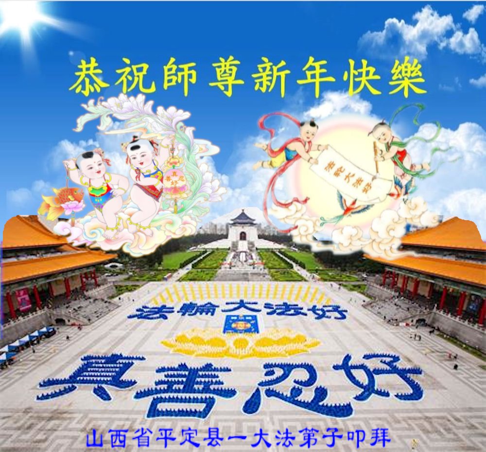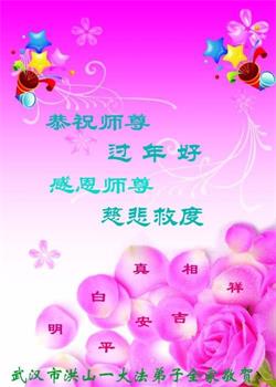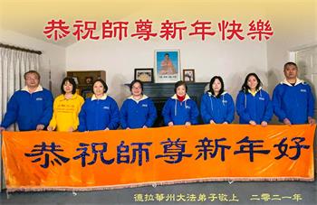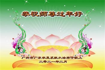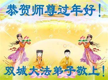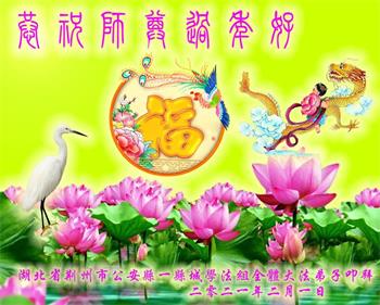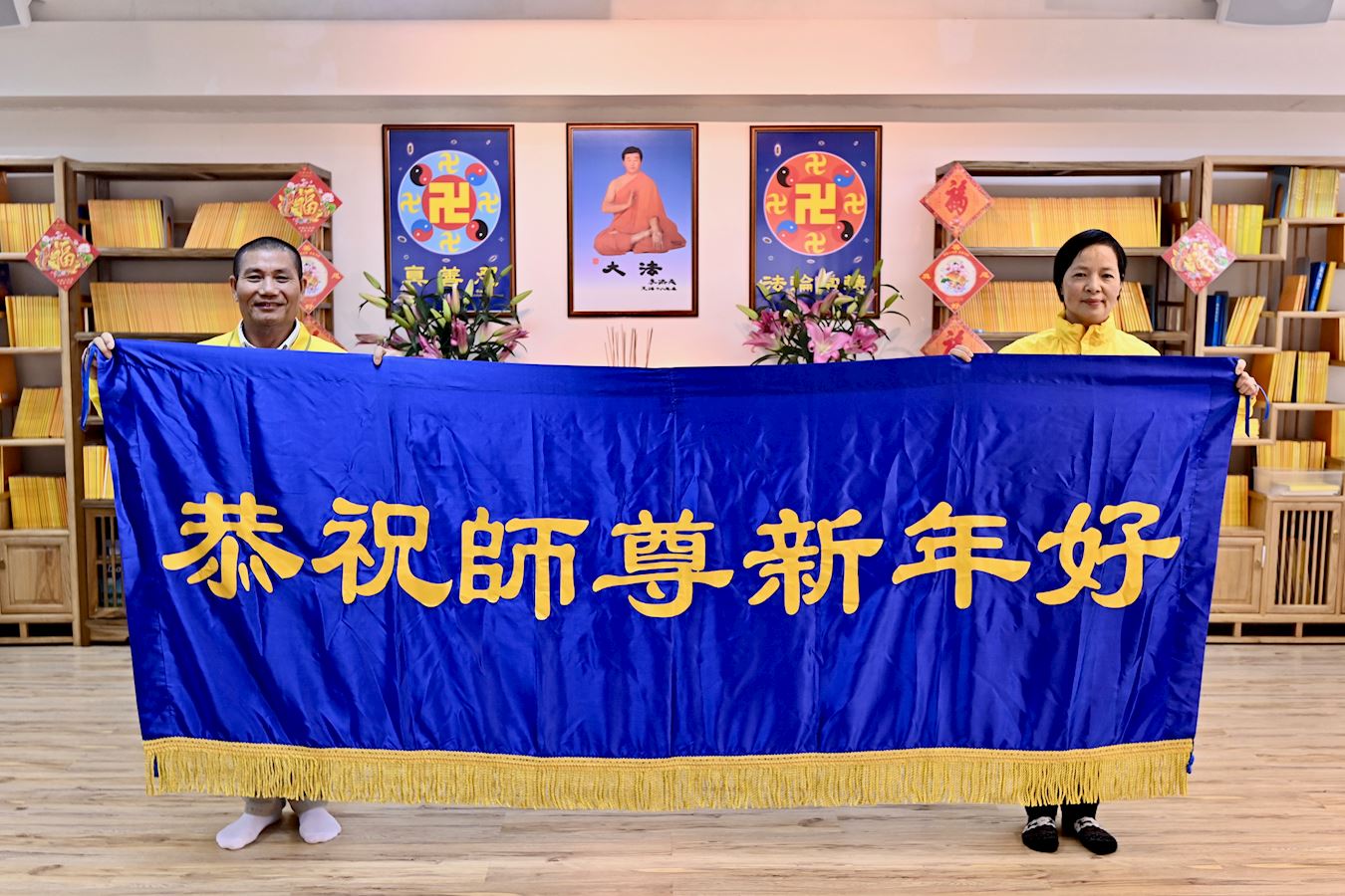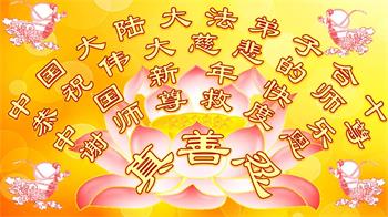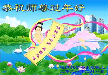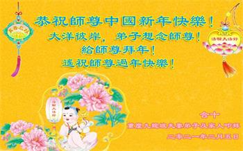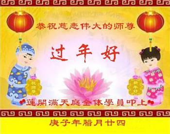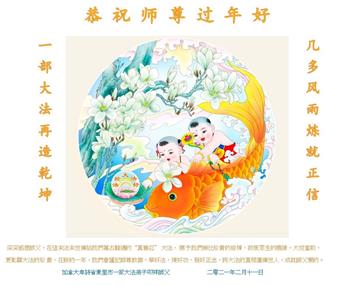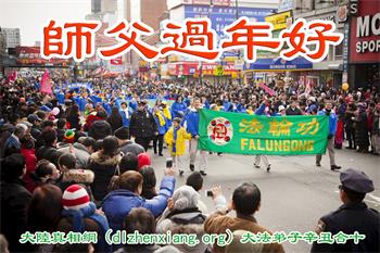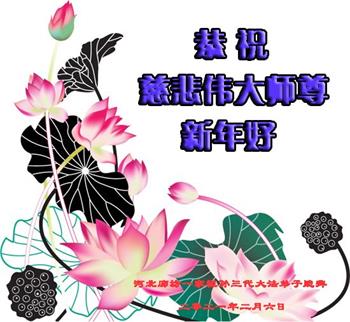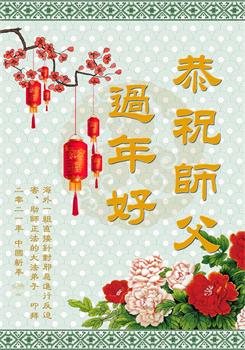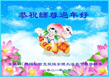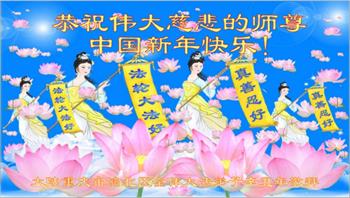 ![]() 图2:香港法轮功学员向师尊拜年,感恩师父广传法轮大法,慈悲救度众生。 |