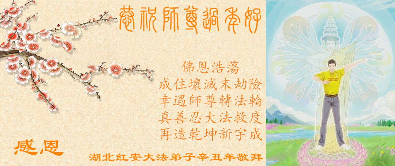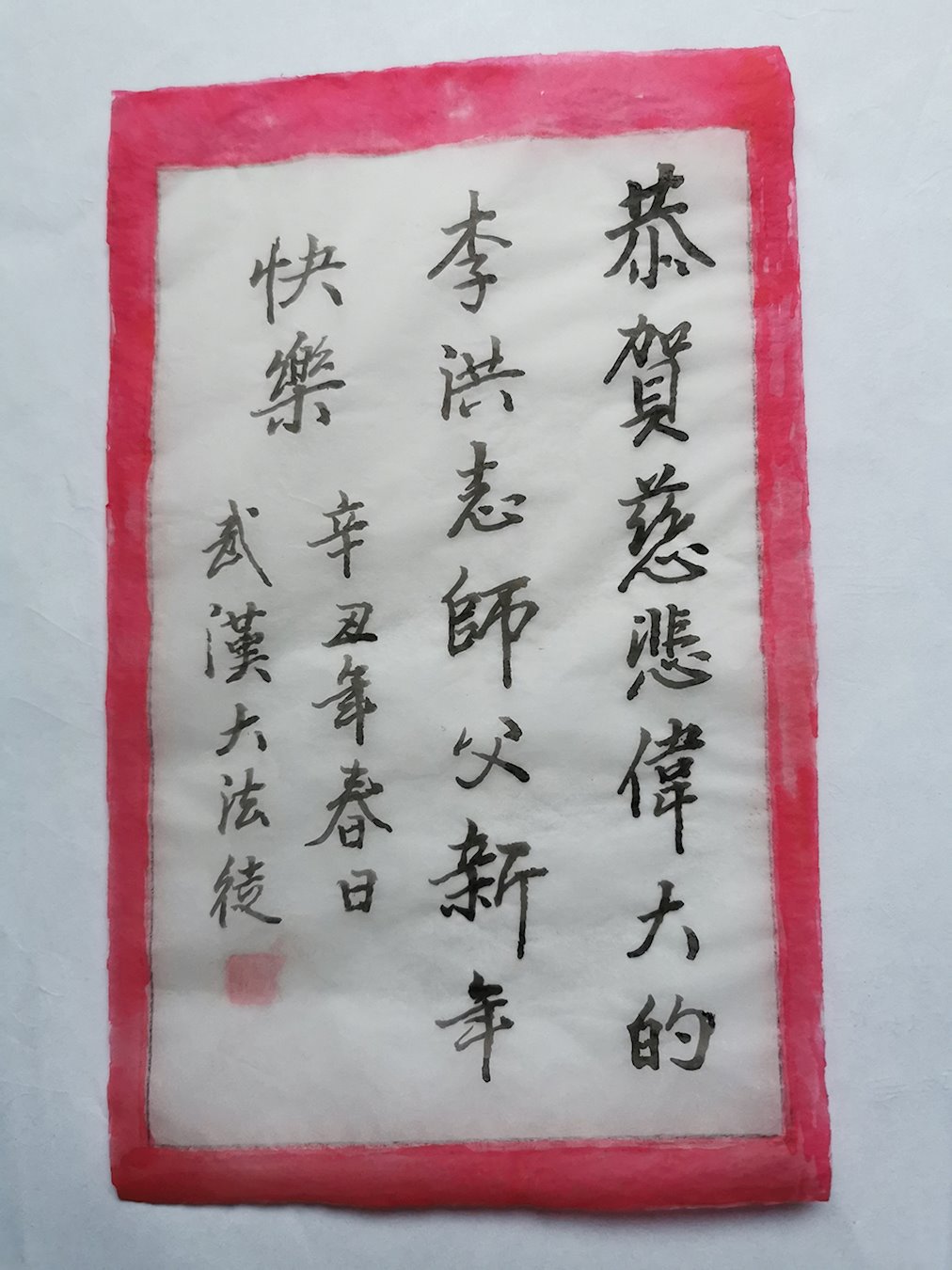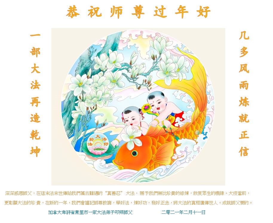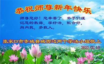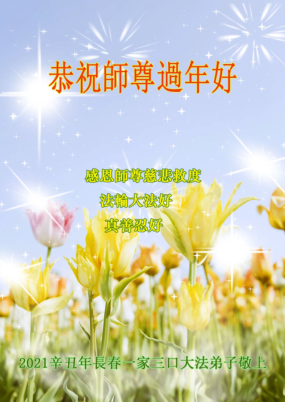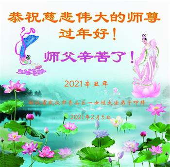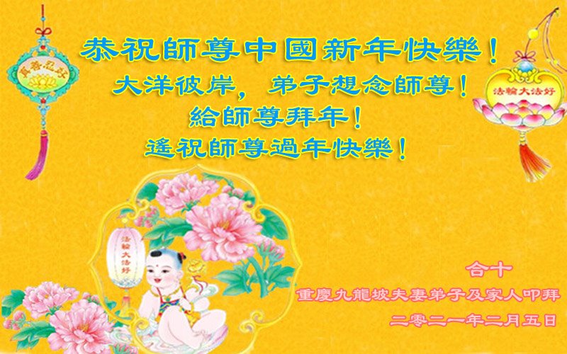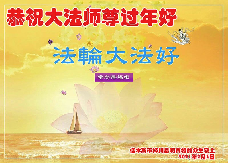 【明慧网二零二一年二月十四日】今年是法轮功弘传二十九年,至今有逾百国家和地区、上亿法轮功学员修炼。适逢辛丑年大年初一,包括香港等全球各地法轮功学员,都以各种方式向法轮功创始人李洪志先生拜年,感谢师恩。