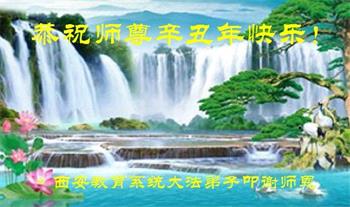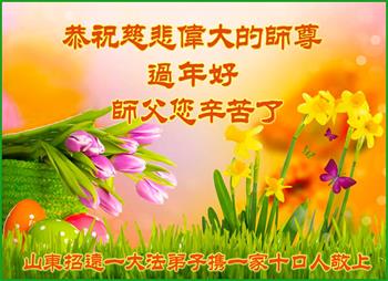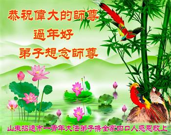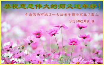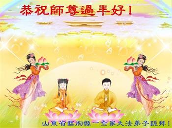 法轮大法真、善、忍的光辉时时刻刻照耀着我们家中的每一个人,我们全家八人都在大法中受益。在师父的保护下,出现很多奇迹。在新年来临之际,我们全家人恭祝慈悲伟大的师尊新年快乐!