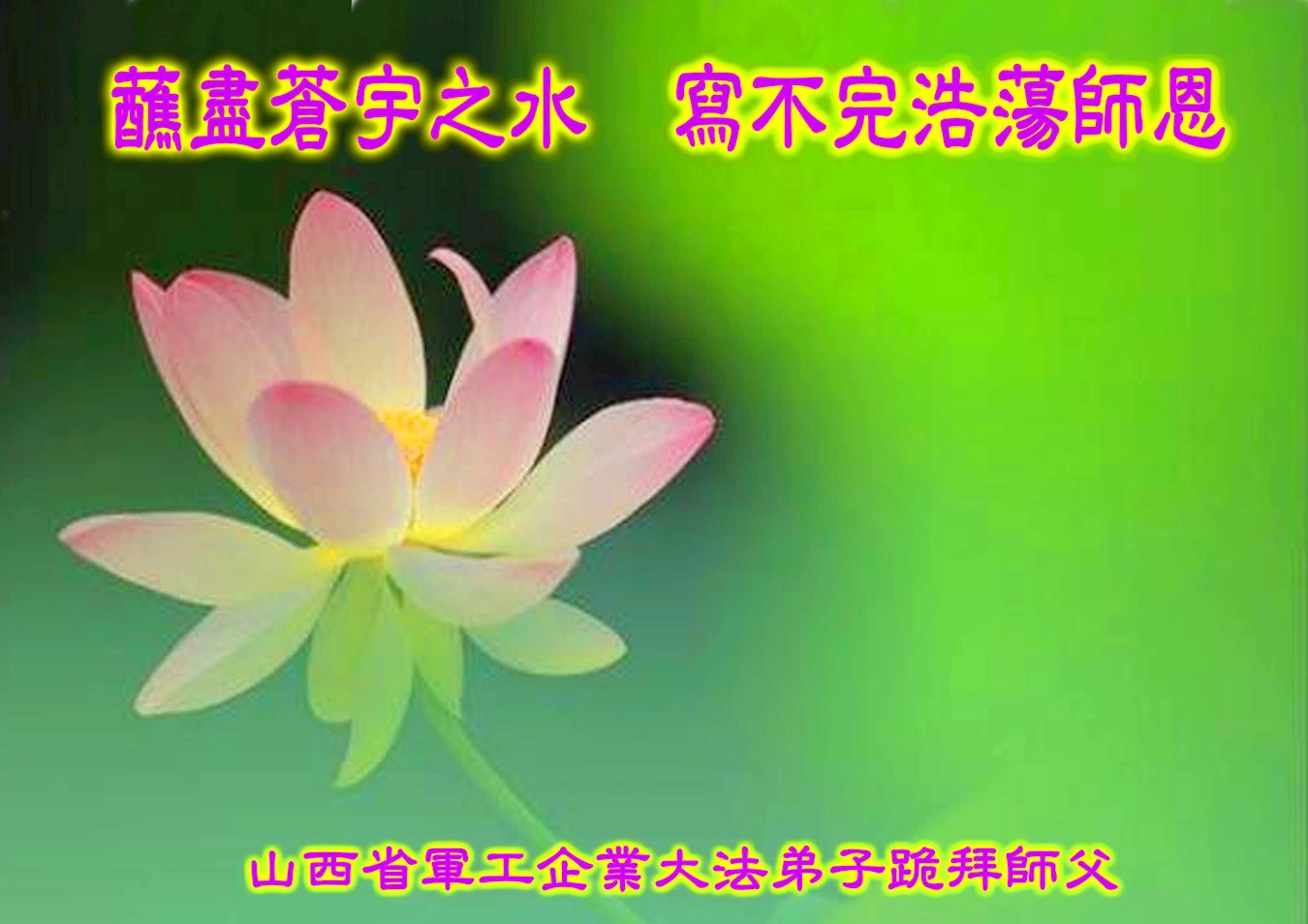 师尊您辛苦了!弟子是“七·二零”前得法的,现在已是四世同堂。我一人炼功,可全家人都受益。大家互敬互爱,健康平安,生活幸福无比,有师父真好!做师尊的弟子真好!弟子唯有精進实修,努力做好师尊让我做的“三件事”,完成史前大愿,以报师恩!圆满随师还。