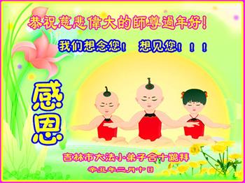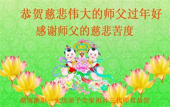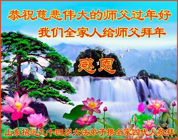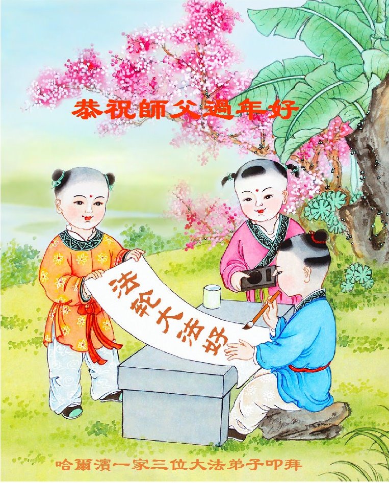 在中国新年来临之际,我们全家祖孙三代深深的感谢伟大的大法师父的慈悲救度!千言万语道不尽对师父的感恩!唯有按照师父的教导,按照真、善、忍做一个好人、更好的人,对社会有益的人。