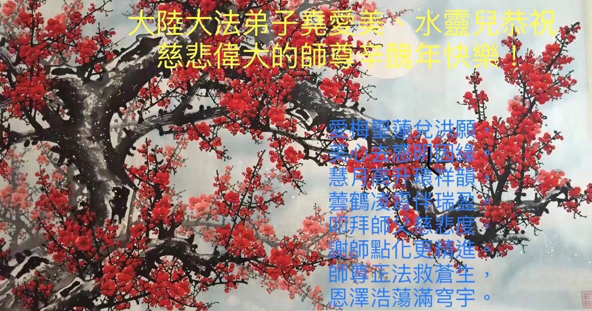 无限感恩师尊的慈悲救度!多年来,我们母子二人在师尊的看护下,互相督促,不断精進,我们一定会更加努力做好三件事,不辜负师尊的慈悲救度,不辜负众生对大法弟子的期盼。惟愿师尊笑!