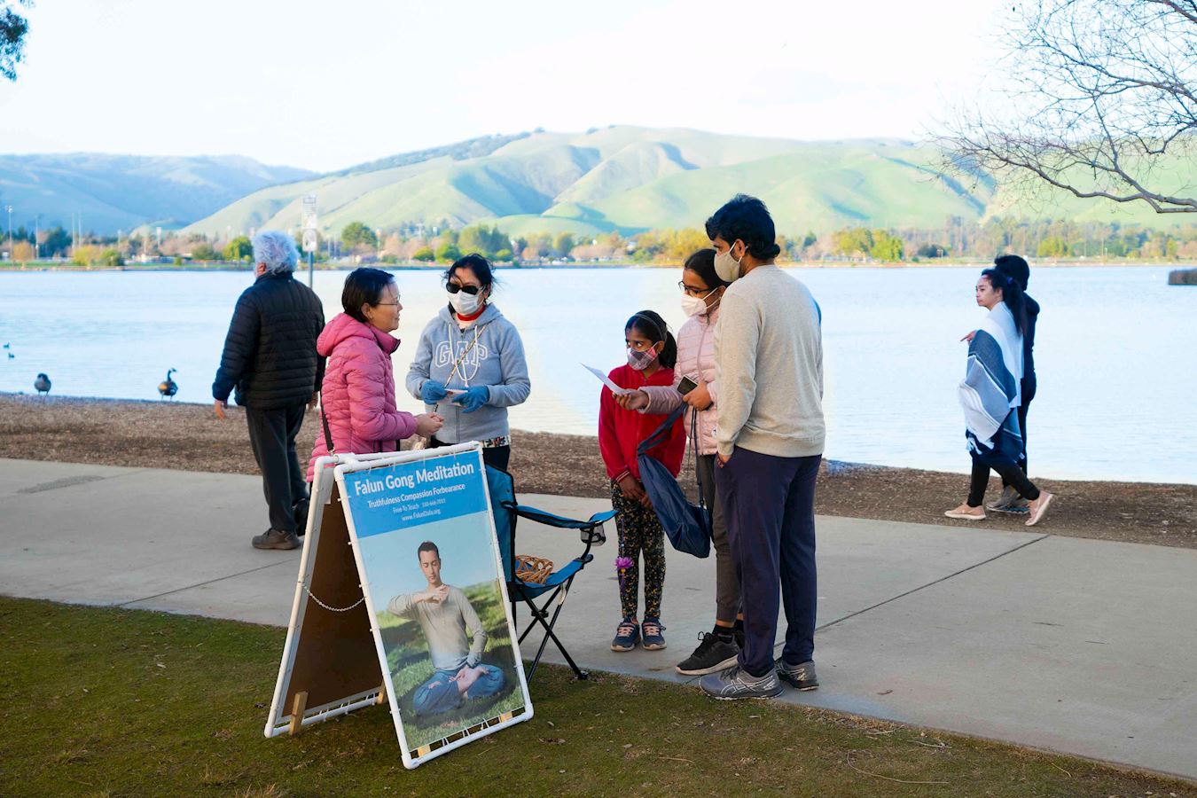 几个月前,佛利蒙的法轮功学员决定,除了晨炼外,在靠近民众散步的地方,再开辟一个下午洪法炼功点,主要是让人们可以索取真相资料,看到学员们的炼功场景,了解法轮功,让他们对法轮功真、善、忍有一个正面的认识。同时,让有缘人可以有机会真正走进修炼。