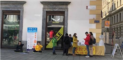 【明慧网二零二一年二月二十四日】二零二一年二月二十日周六,部份奥地利法轮功学员们在维也纳和格拉茨两大州府城市举办真相点活动,呼吁人们关注在中国对法轮功学员的迫害。位于维也纳市中心步行街的维也纳真相点。活动当天,很多路人驻足和真相点的学员们交谈,并纷纷签名反对在中国发生的活摘器官罪行。