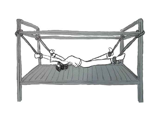 已65岁的法轮功学员周美丽,2016年12月19日被中共绑架到江西省女子监狱,当日就被监狱上脚镣和穿束缚带,晚上睡觉手脚都绑在床上。