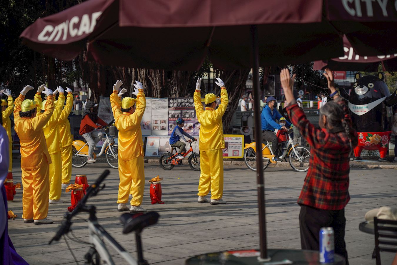 来自市区的许女士,自家经营生产香油、黑麻油等的工厂。周日携儿子出来走走,原想拜访龙虎塔边的一间艺品店朋友,恰巧看到有上百法轮功学员在广场炼功弘法,特别高兴。她说因为平日工作劳累,全身到处酸痛,看医生也无济于事。朋友劝说只有炼法轮功才会好,她铭记在心里。正巧就在这时看到法轮功,激动地说:“我终于找到你们学法轮功了!”