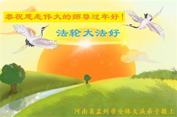 师父过年好!感恩师父的慈悲救度!在这最后的时刻,弟子们牢记自己的责任和使命,做好三件事,讲清真相,让更多的世人知道法轮大法好、真善忍好。