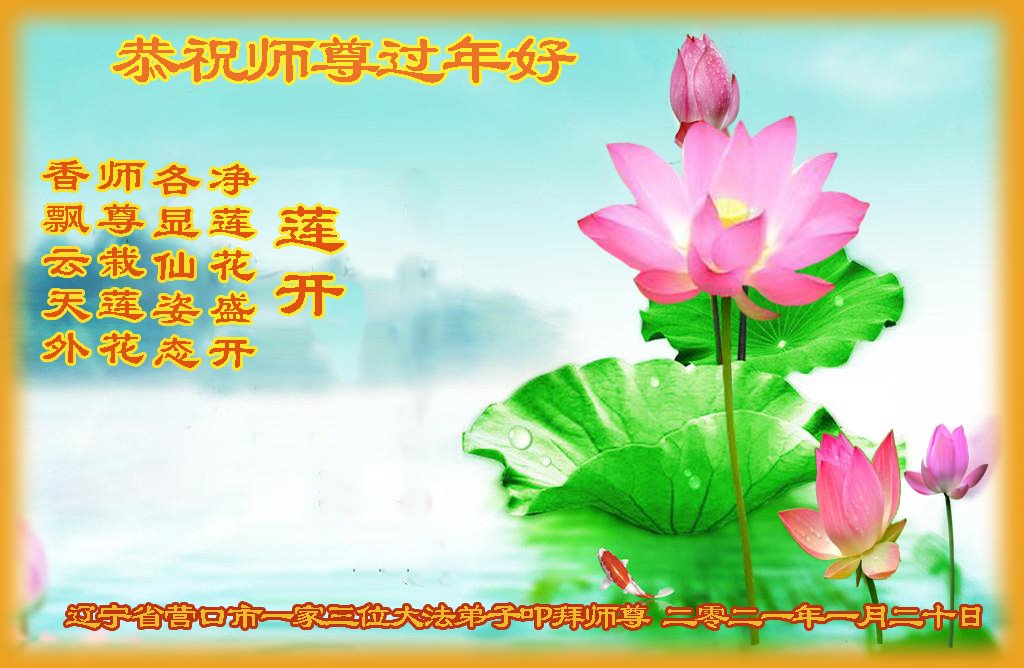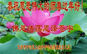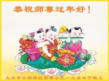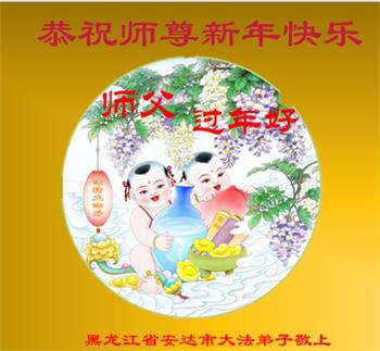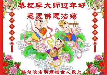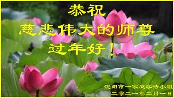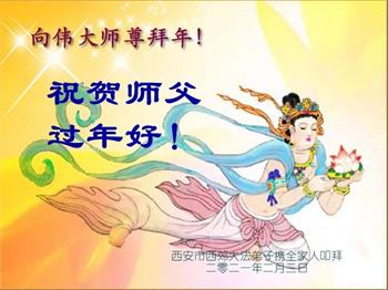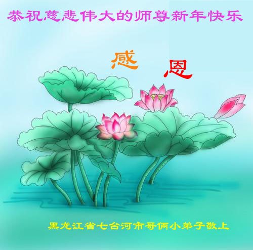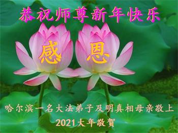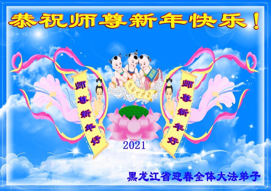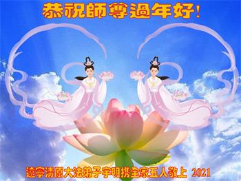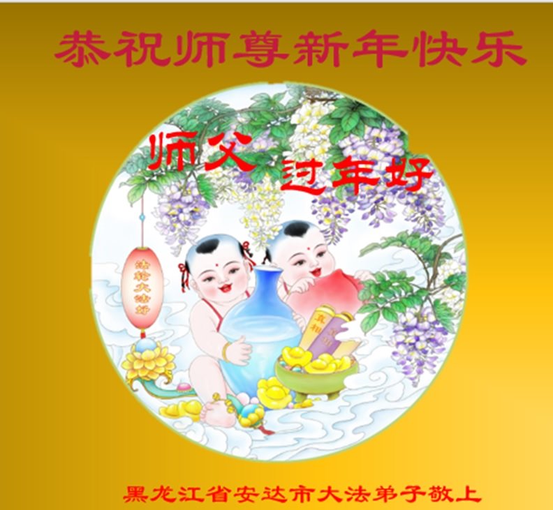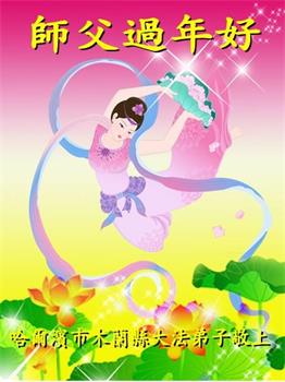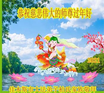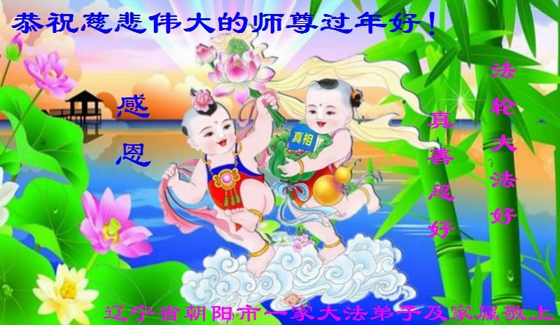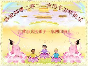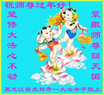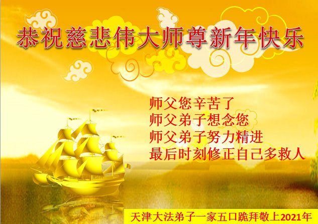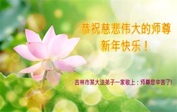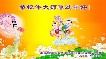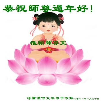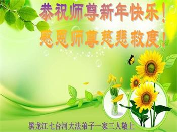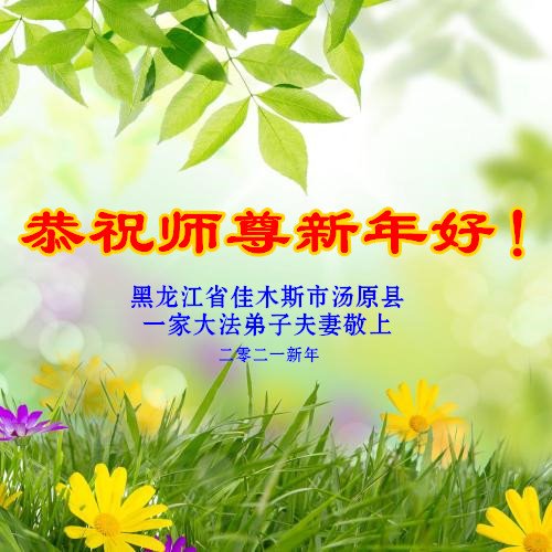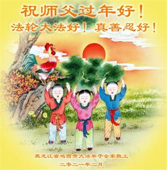 黑龙江省哈尔滨市一家人恭祝大师新年快乐!他们说:“在这中共病毒瘟疫肆虐、多灾多难的时候,我们不会惧怕,我们相信在大师的慈悲保护下,心怀善念,常颂‘法轮大法好,真善忍好!’这避瘟良方定会使全家平安健康,渡过劫难。”
