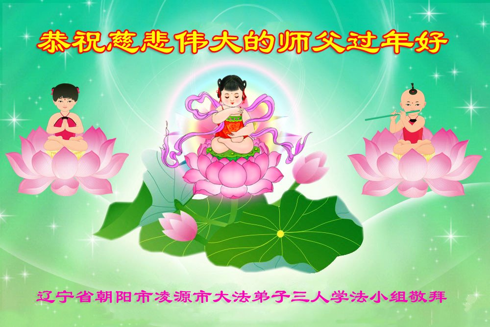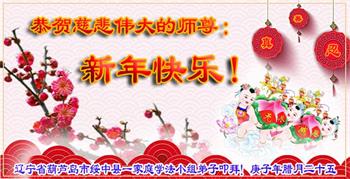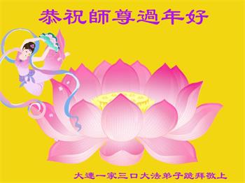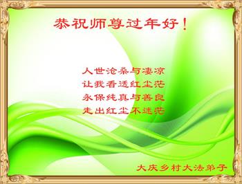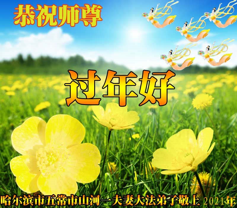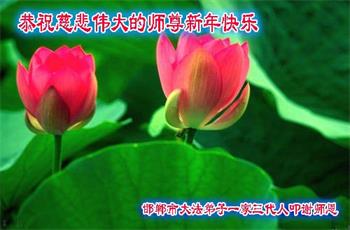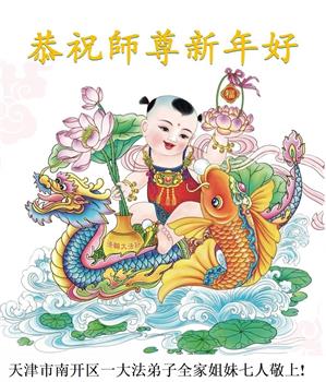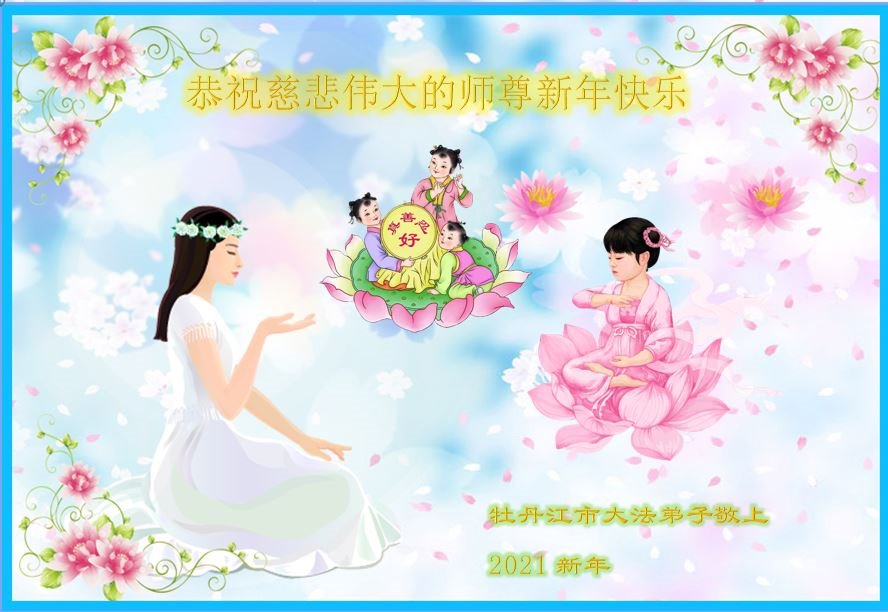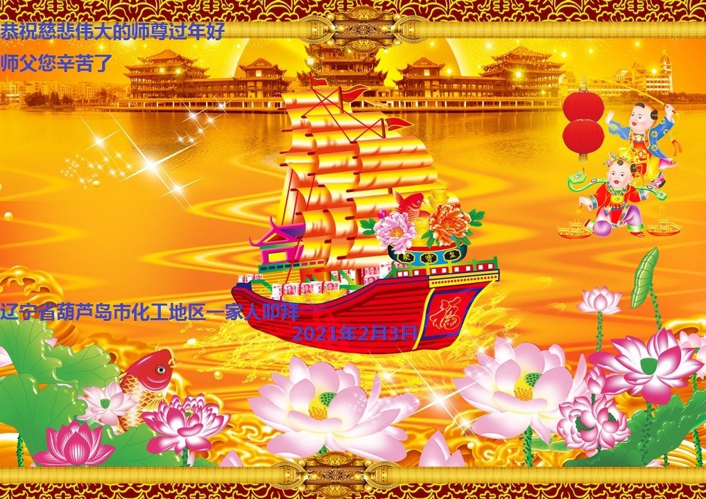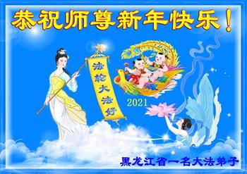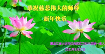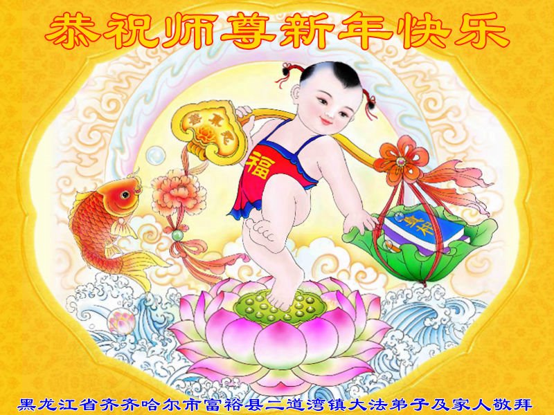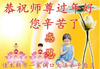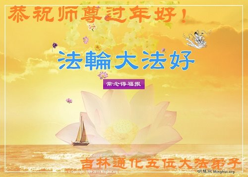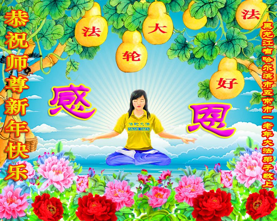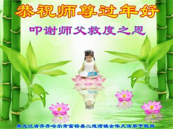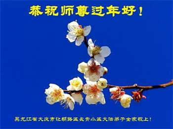 黑龙江省哈尔滨市一家人恭祝大师新年快乐!他们说:“在这中共病毒瘟疫肆虐、多灾多难的时候,我们不会惧怕,我们相信在大师的慈悲保护下,心怀善念,常颂‘法轮大法好,真善忍好!’这避瘟良方定会使全家平安健康,渡过劫难。”