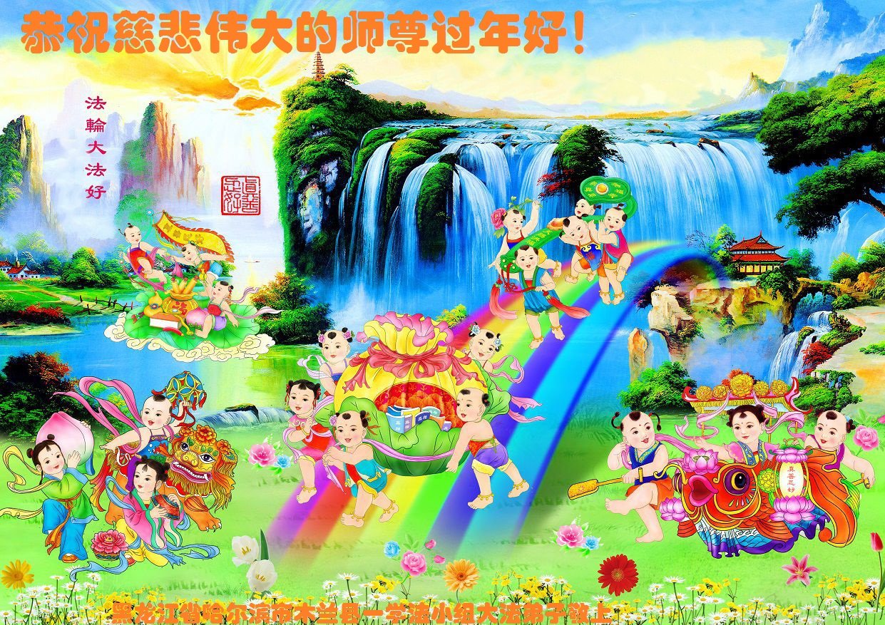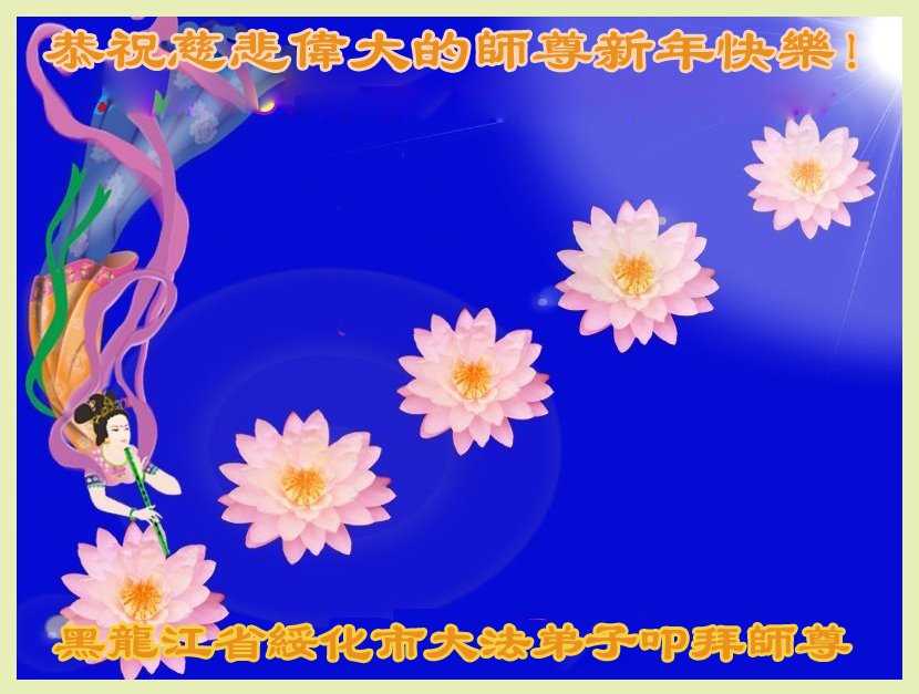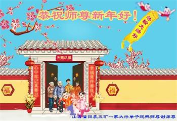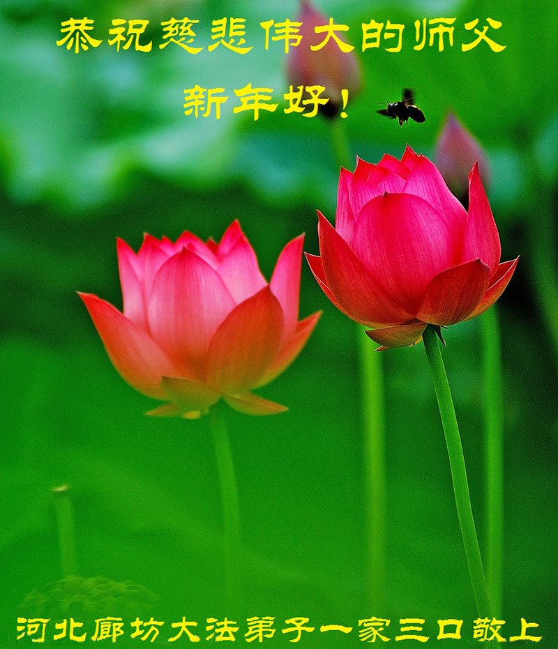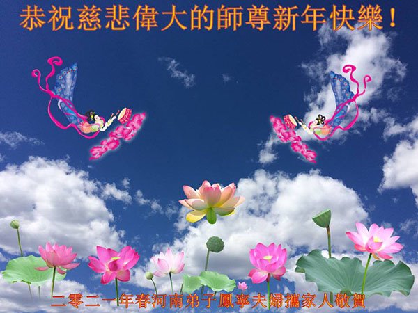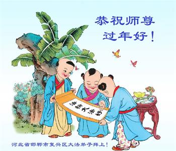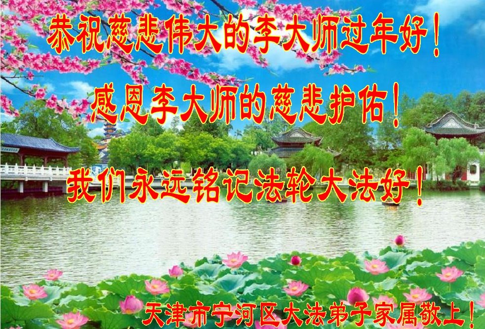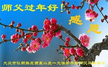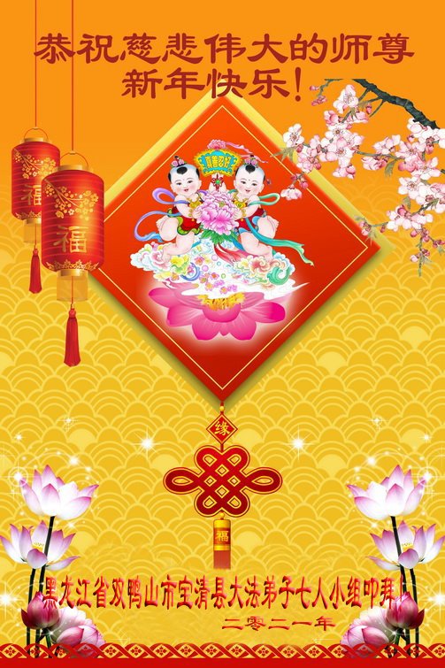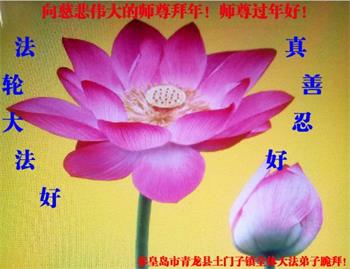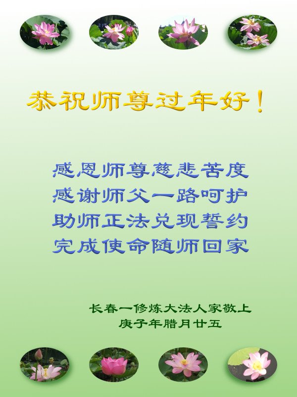 黑龙江省哈尔滨市一家人恭祝大师新年快乐!他们说:“在这中共病毒瘟疫肆虐、多灾多难的时候,我们不会惧怕,我们相信在大师的慈悲保护下,心怀善念,常颂‘法轮大法好,真善忍好!’这避瘟良方定会使全家平安健康,渡过劫难。”