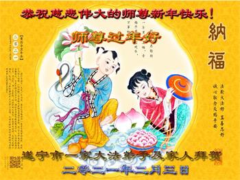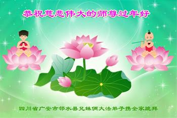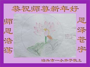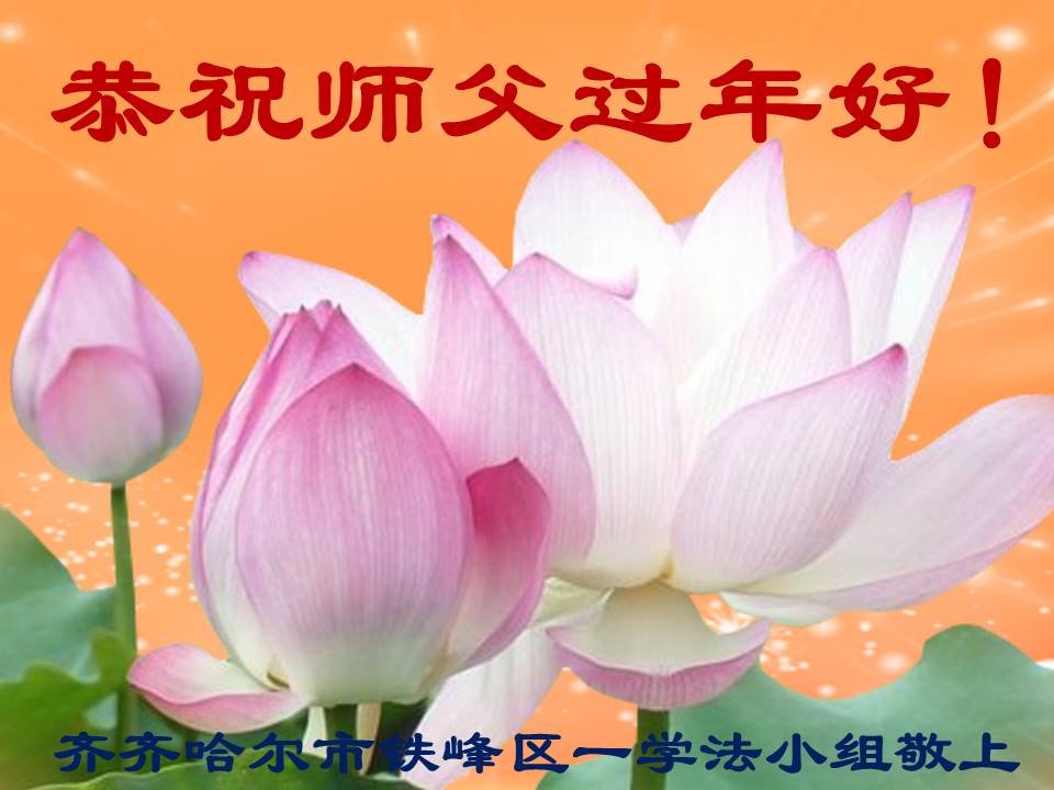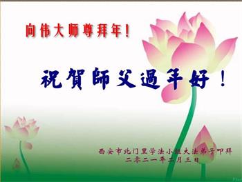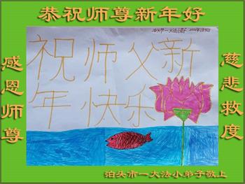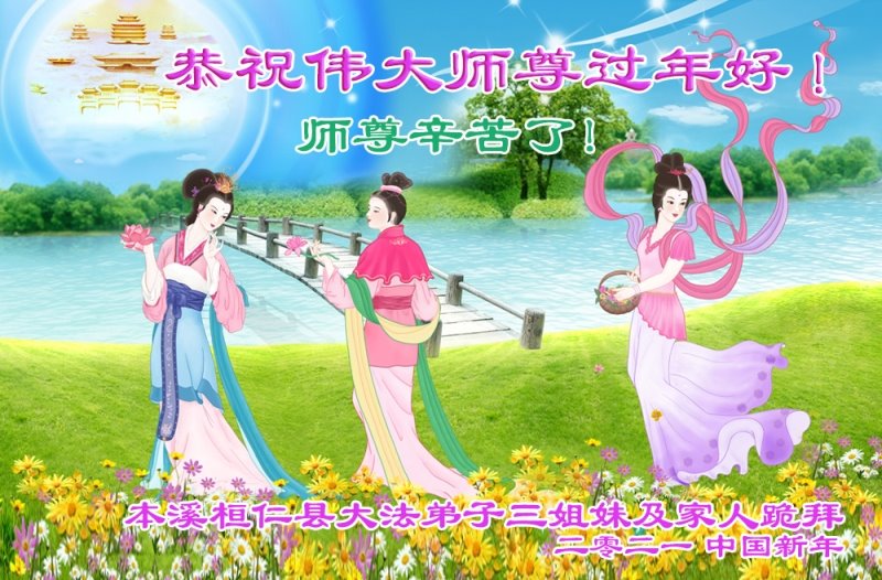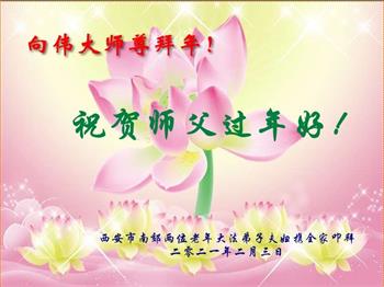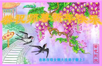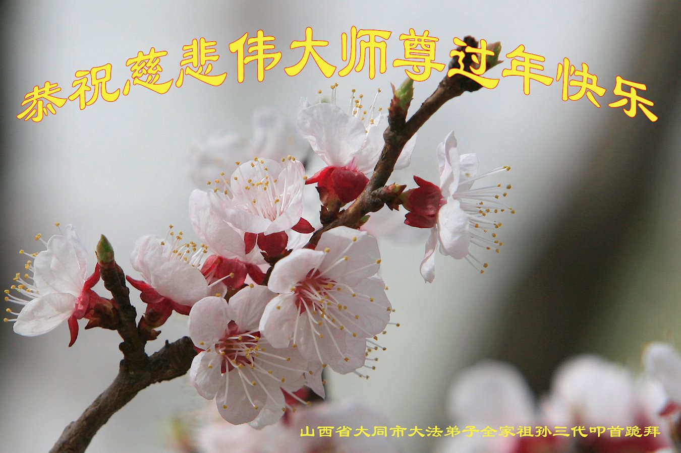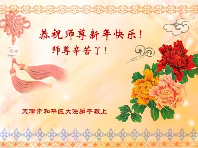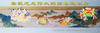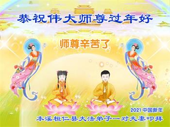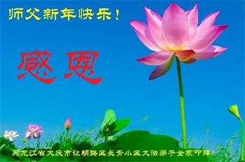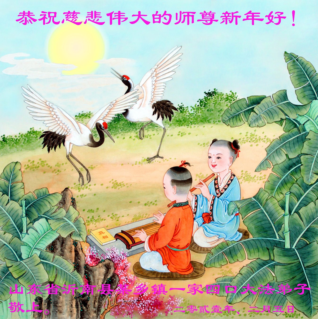 黑龙江省哈尔滨市一家人恭祝大师新年快乐!他们说:“在这中共病毒瘟疫肆虐、多灾多难的时候,我们不会惧怕,我们相信在大师的慈悲保护下,心怀善念,常颂‘法轮大法好,真善忍好!’这避瘟良方定会使全家平安健康,渡过劫难。”