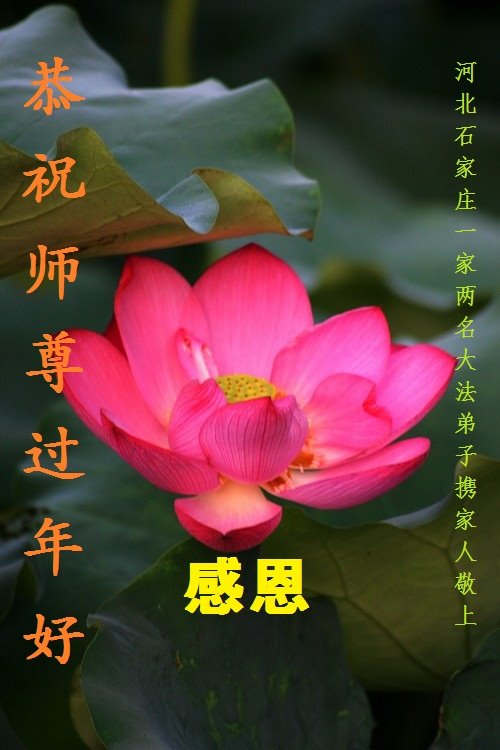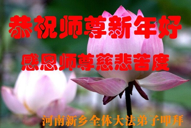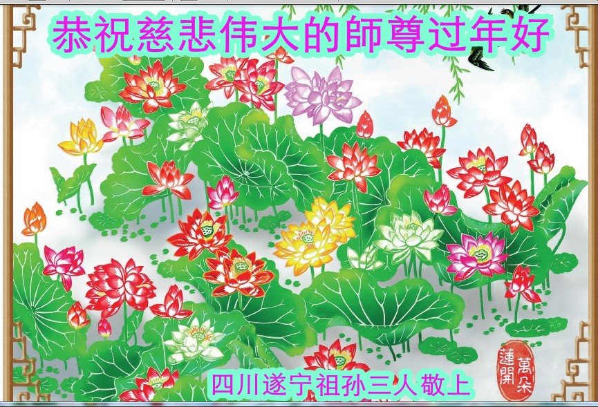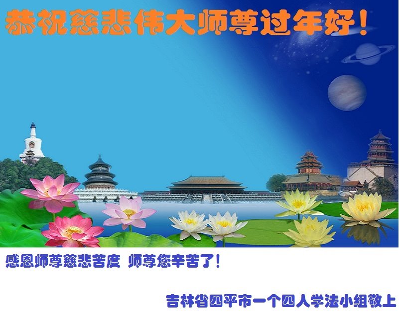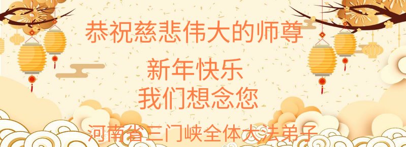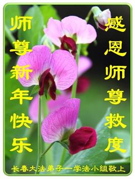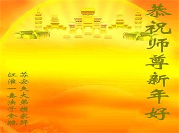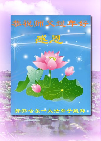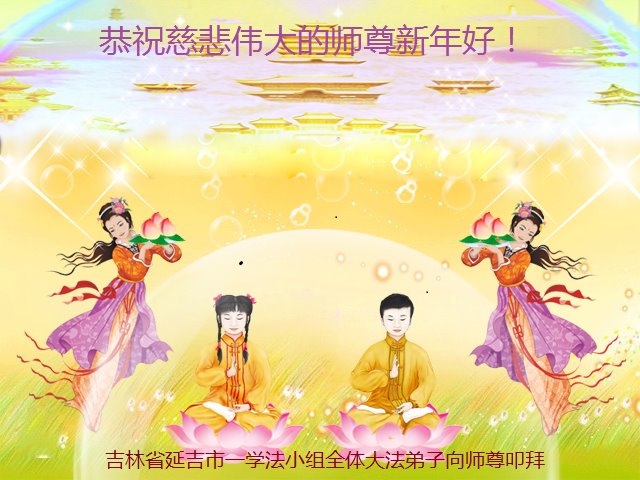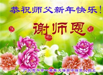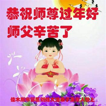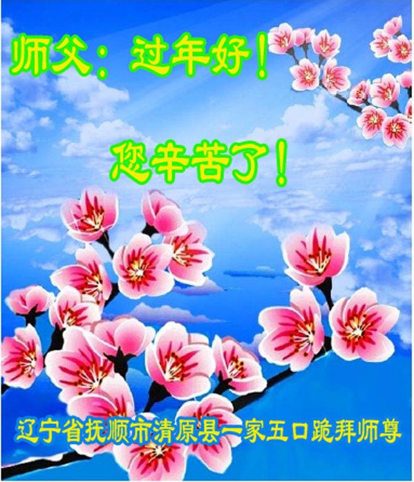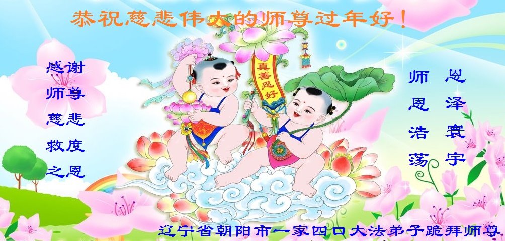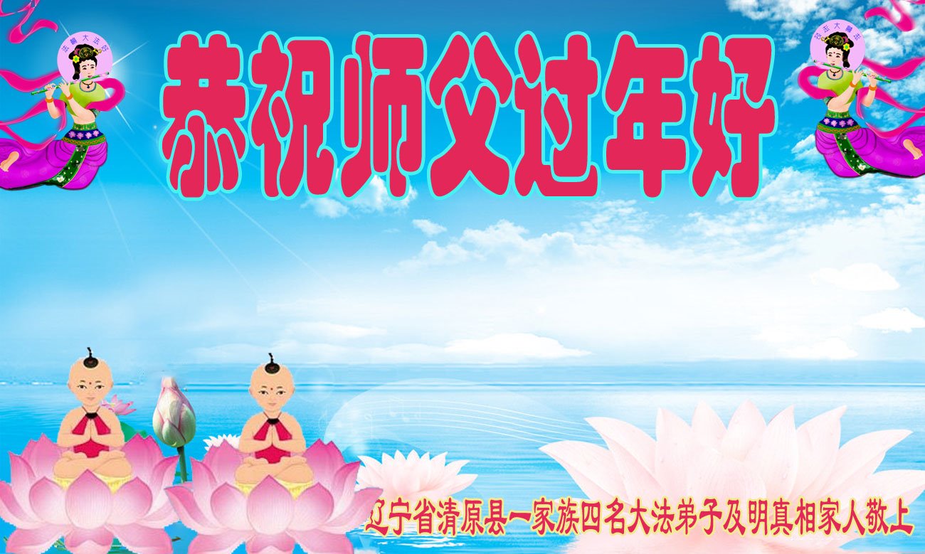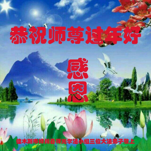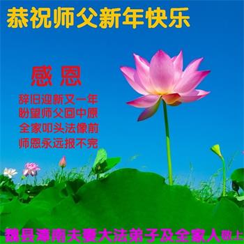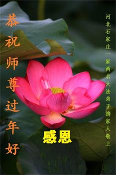 我们全家老少四世同堂二十几人,向慈悲伟大的李洪志大师献上最诚挚的新年祝福和感恩:恭祝大师新年快乐!万事如意!全家幸福!感谢大师佛恩浩荡救度无量众生!更使我们全家身心受益得福报。