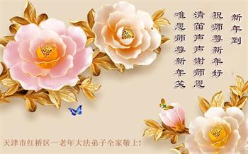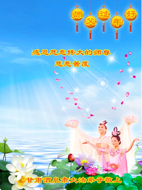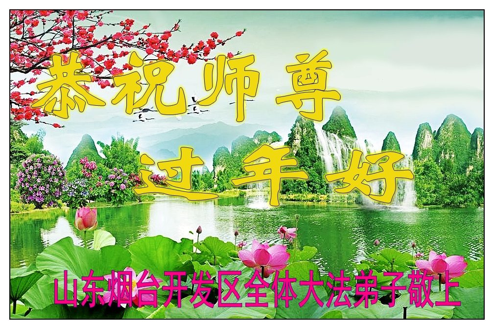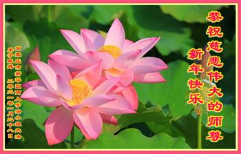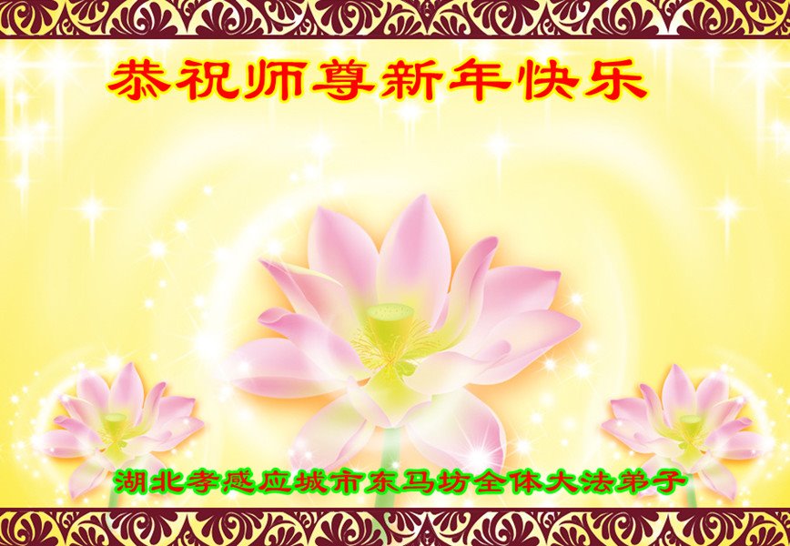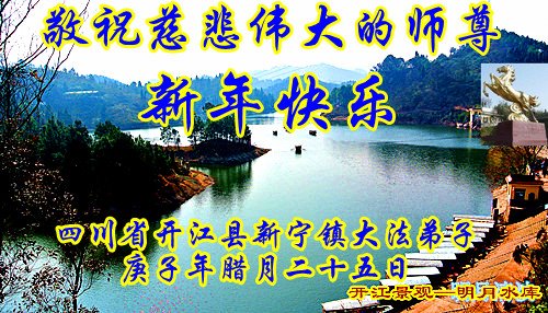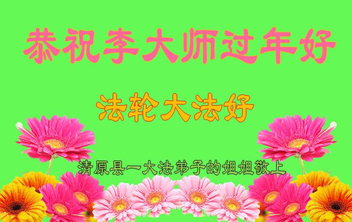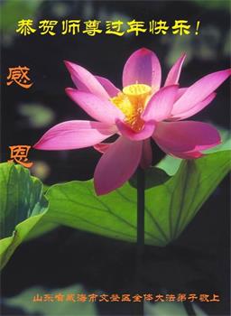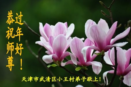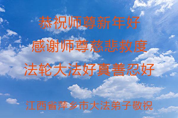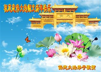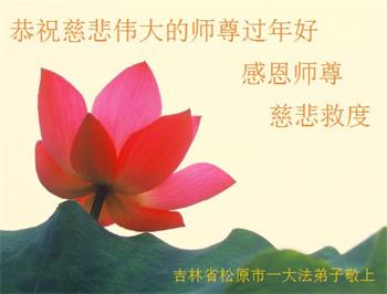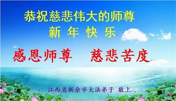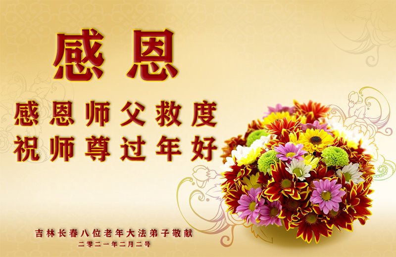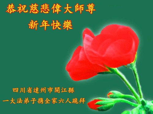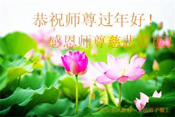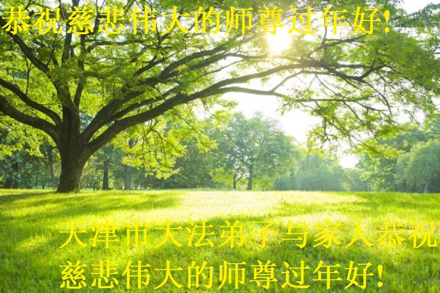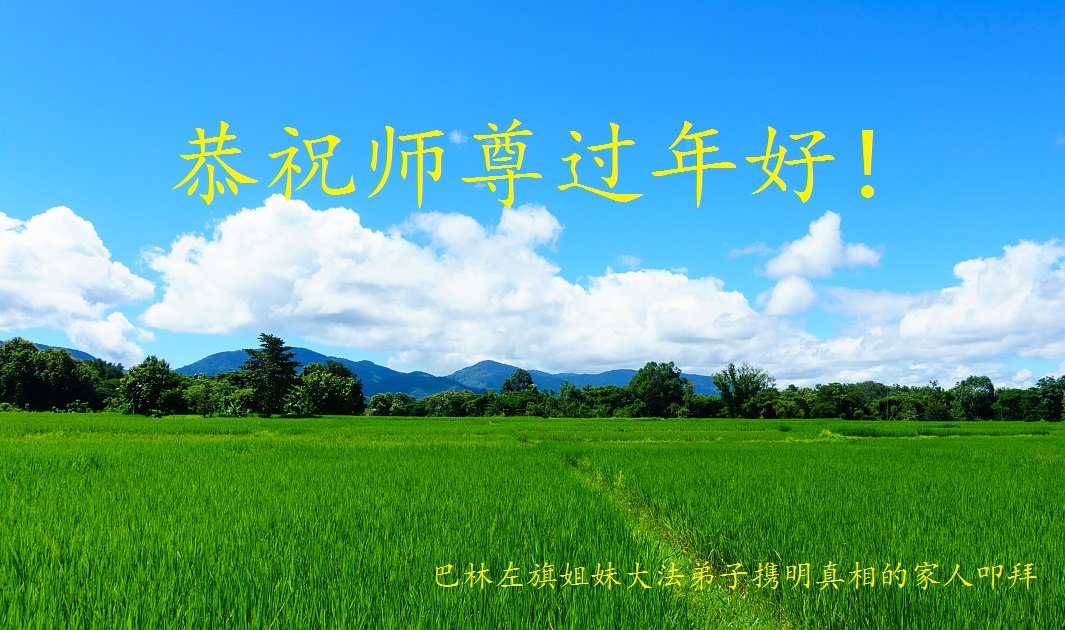 我们全家老少四世同堂二十几人,向慈悲伟大的李洪志大师献上最诚挚的新年祝福和感恩:恭祝大师新年快乐!万事如意!全家幸福!感谢大师佛恩浩荡救度无量众生!更使我们全家身心受益得福报。