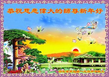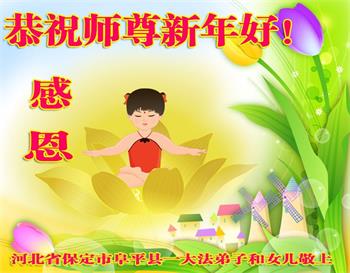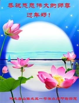 河北保定阜平县一大法弟子的儿女在贺词中说:“现在我们长大了,妈妈遭(中共)迫害骚扰时,我们会想办法保护妈妈,因为在妈妈身上,我们看到了大法的神奇。我们知道师父是救人的,大法是最正的,我们坚信,邪恶必灭,正义必胜,光明大显。”