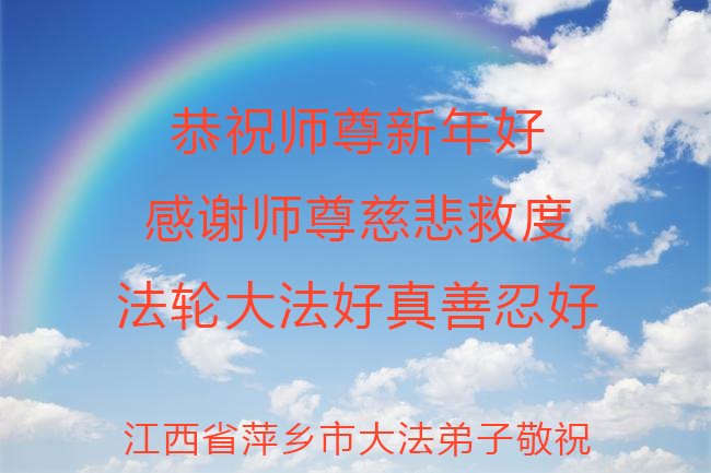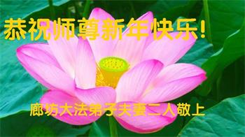 我们是奉读大法、明白真相的世人,虽未修炼,但大法与大法师父遭到诽谤和诬陷时,只要我遇到,会毫不犹豫的站出来维护大法师父的尊严和名誉。因为大法是正的,大法师父是圣洁的,是来救人的。大法师父:过年了,我们夫妇俩给您拜年!祝您过年好!