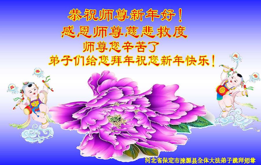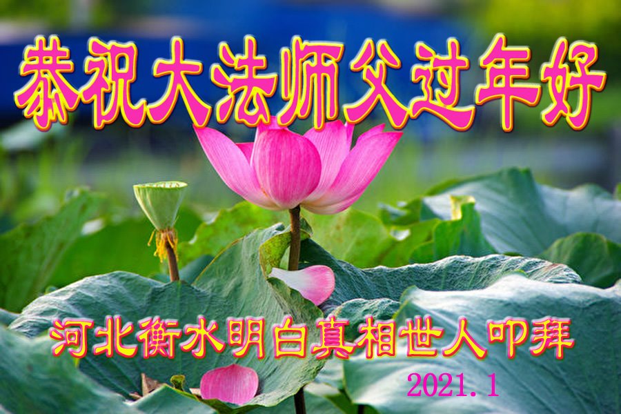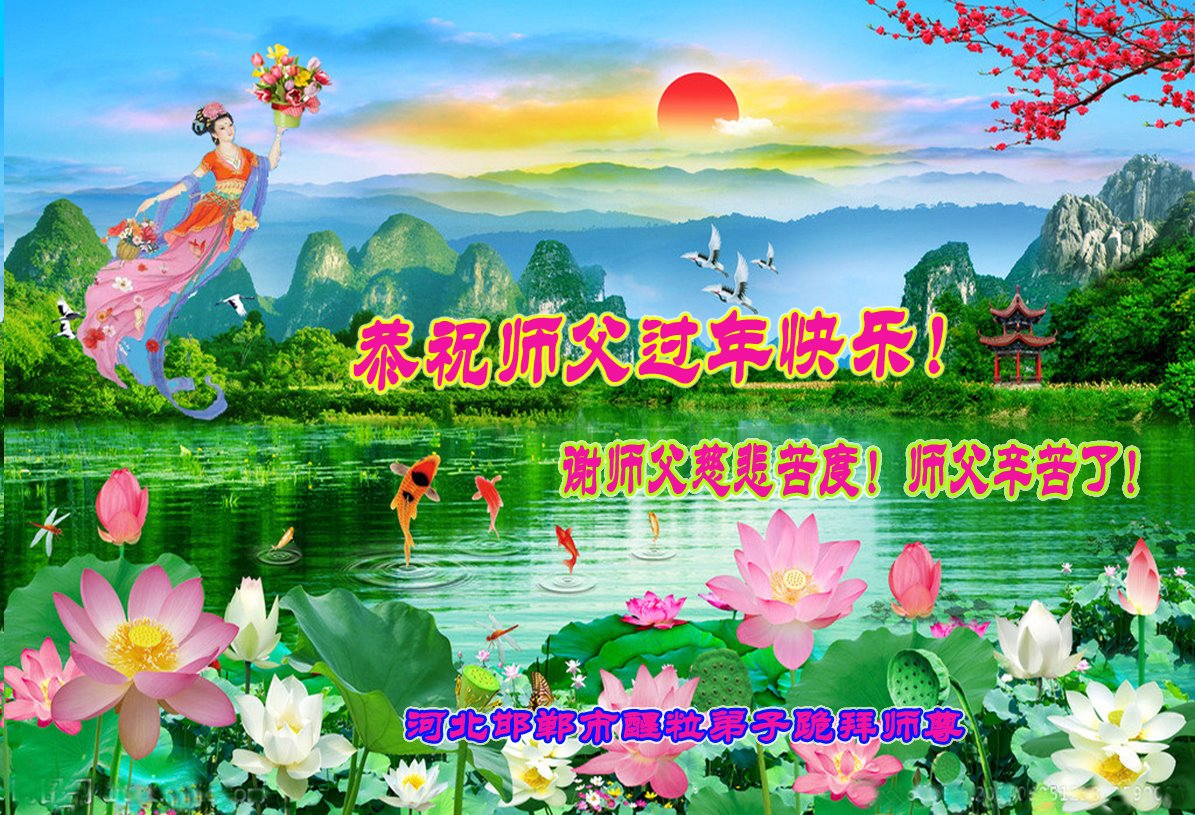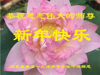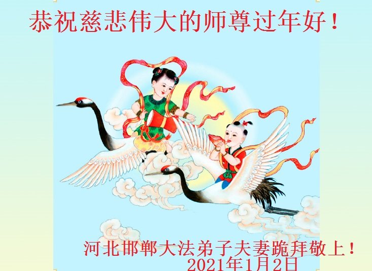 河北石家庄辛集的明白真相的人们恭祝李大师新年好!同时祝贺您的弟子又走过了这不平凡的一年,在疫情期间还在救人。可以说大法师父和大法弟子都在救度众生。我们也祝你们一臂之力,早日结束这场迫害。愿您的弟子不再遭迫害。解体中共。谢谢您和您的弟子们!