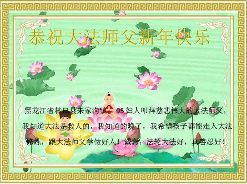 吉林省通化柳河县一位九十六岁的老人恭祝慈悲伟大的李大师过年好!