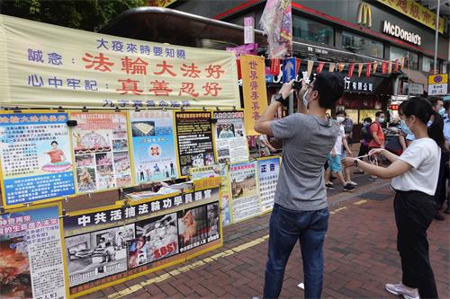 '图4~7:香港法轮功学员不惧中共迫害压力下,仍坚持不懈在各真相点讲清法轮功受迫害真相,希望民众能了解真相,为自己带来美好的未来。'