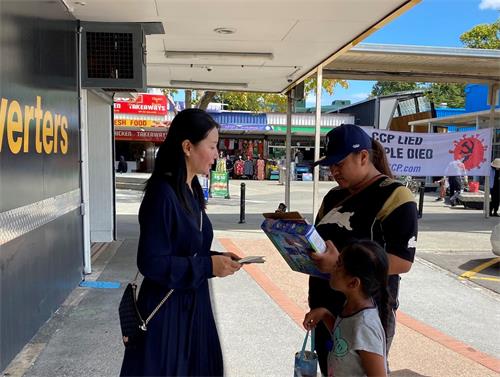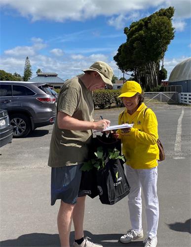 【明慧网二零二一年三月十六日】(明慧新西兰记者站报导)二零二一年三月十三日星期六,新西兰奥克兰法轮功学员们来到南区讲真相、征签、汽车真相游行,人们了解真相后,纷纷表示支持。有的人主动介绍法轮功学员到其他社区活动征签,有的人谴责中共活摘人体器官牟利以及各种反人类的罪行。