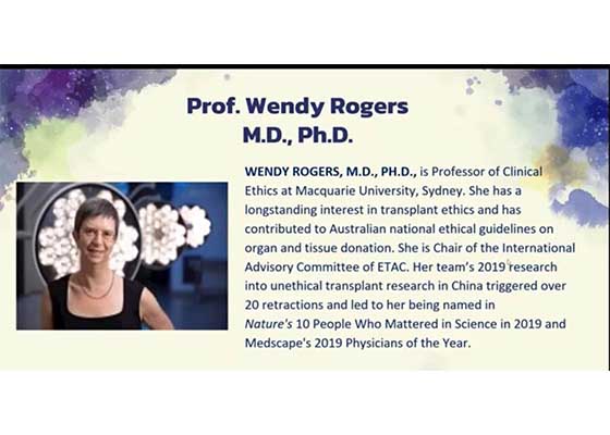 澳大利亚教授罗杰斯在二月二十四日的论坛上从道德责任的角度,阐述了专业机构及人士应采取多项行动共同制止中共活摘器官。
