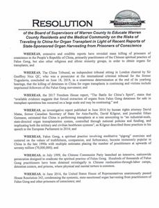 美弗州沃伦县通过决议案 谴责中共活摘器官