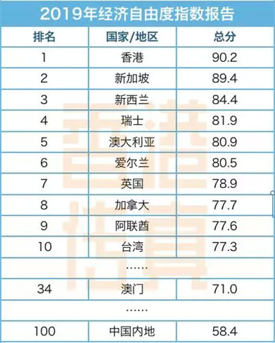 华府智库传统基金会和《华尔街日报》日前发布的全球经济自由度2020指数报告,该指数以财政健康、贸易自由、金融自由等10大类50个指标为评估因素。在全球179个经济体中,中国得分59.5 ,排在世界第103位,属于“重度不自由”等级,比2019年的第100位还有所下降。