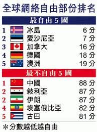 2020年10月,美国人权活动组织自由之家公布年度网络自由报告,中国连续6年排倒数第一,是65个国家中网络自由情况获得最差评分的国家,甚至排在伊朗、叙利亚、越南和古巴之后。排名最高的是冰岛,其次是爱沙尼亚和加拿大;美国排名第7。