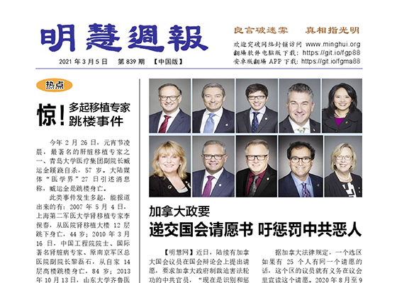加拿大政要递交国会请愿书 吁惩罚中共恶人