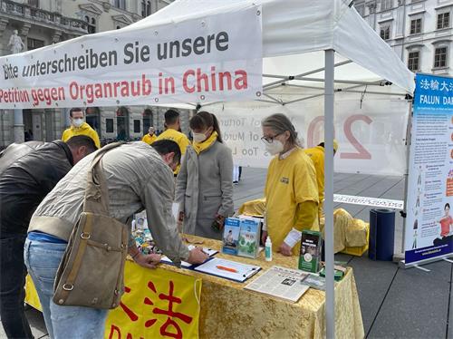 ![]() 图1~5:二零二一年四月十日,奥地利法轮功学员在格拉茨设立真相点,向人们介绍法轮功,并揭露中共的迫害。许多路人驻足了解,并纷纷签名支持反对中共活摘法轮功学员器官。 |