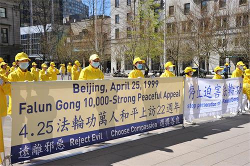 ![]() 图1~4:二零二一年四月十八日,温哥华部份法轮功学员集体炼功,纪念“四二五”上万法轮功学员和平上访二十二周年。 |